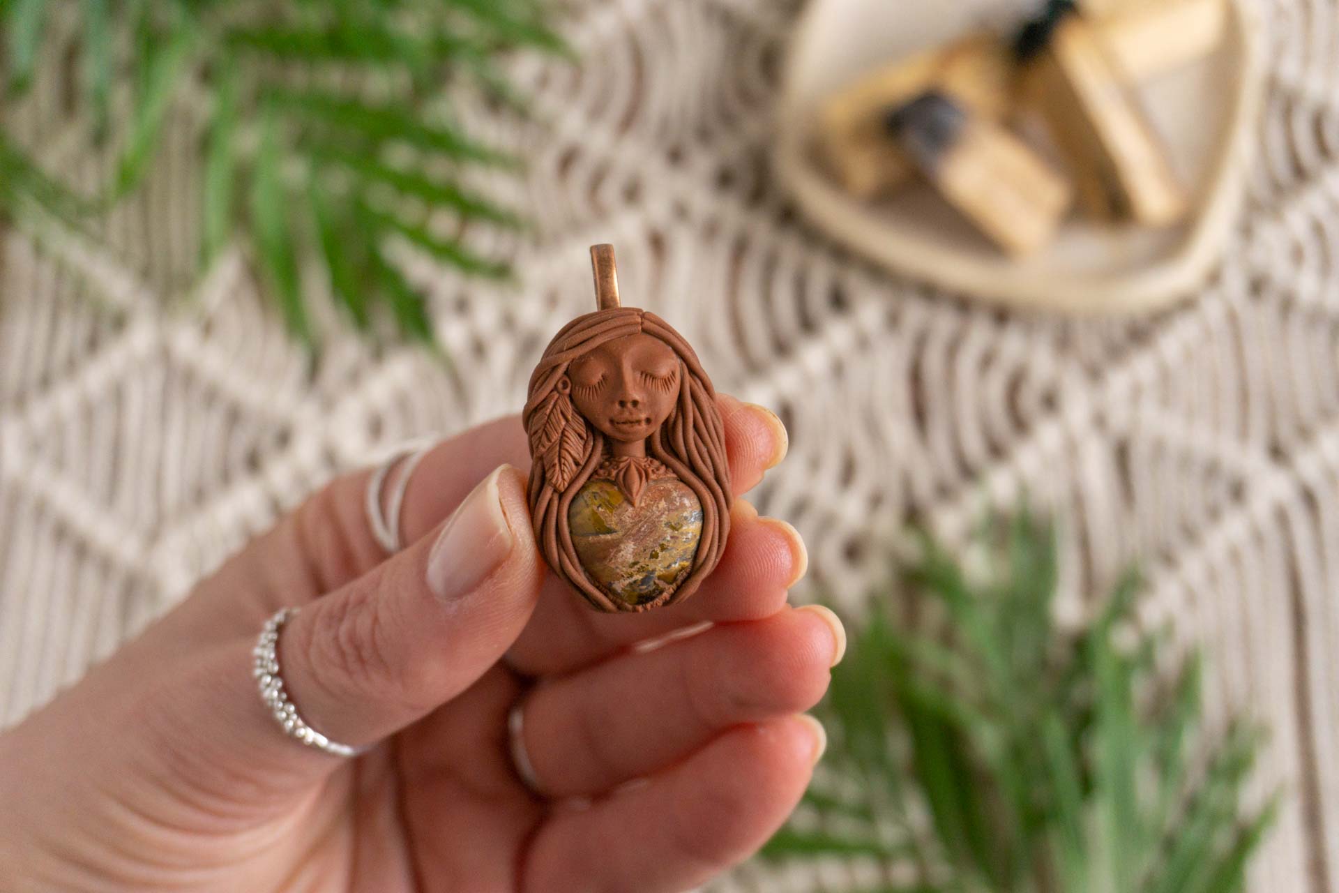 Vsaka Čarobnica je poimenovana po boginjah iz različnih obdobij, kultur in tradicij z vseh koncev sveta. Med izdelavo za vsako Čarobnico posebej povlečem orakelsko karto, ki nosi posebno sporočilo. Z vsako Čarobnico dobite torej še sporočilo, ki ga odkrijete šele, ko odprete paketek.
