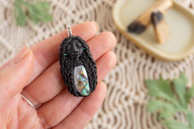 Vsaka Čarobnica je poimenovana po boginjah iz različnih obdobij, kultur in tradicij z vseh koncev sveta. Med izdelavo za vsako Čarobnico posebej povlečem orakelsko karto, ki nosi posebno sporočilo. Z vsako Čarobnico dobite torej še sporočilo, ki ga odkrijete šele, ko odprete paketek.
