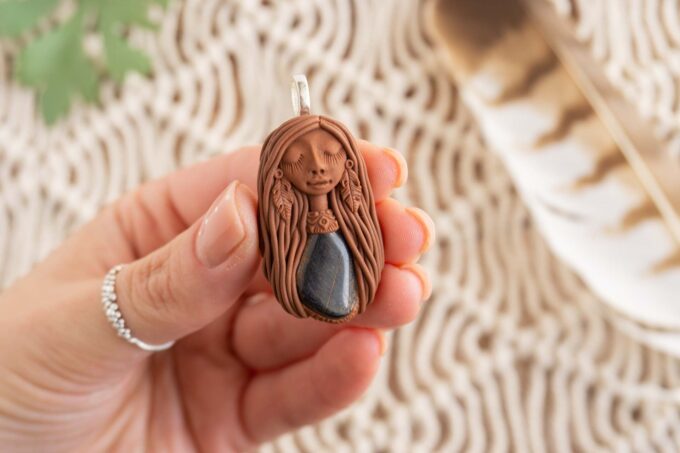 Čarobnica je izdelana iz polimerne gline. Vsak kos je unikaten in na voljo samo en kos. Izdelek lahko minimalno odstopa v barvnih niansah in detajlih, vendar se trudim, da bo vaš izdelek v naravi identičen opisu in fotografiji.