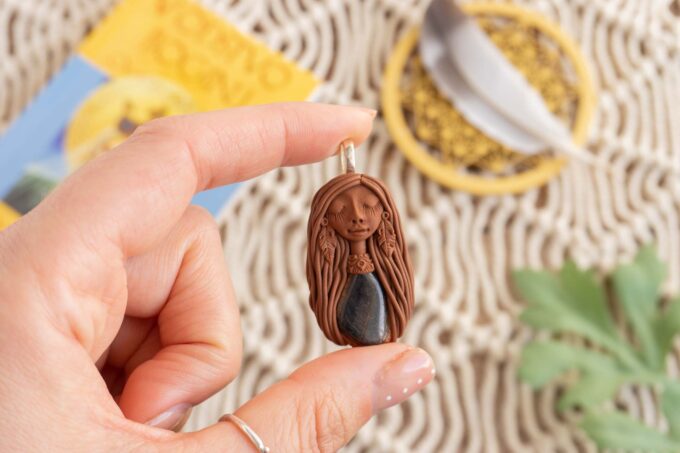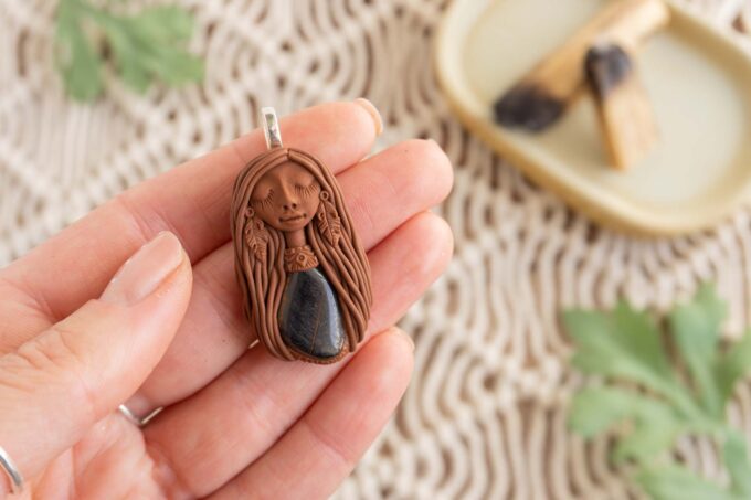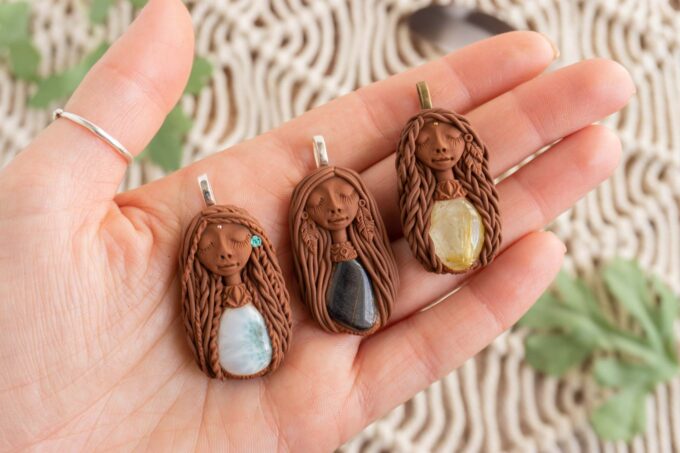 Vsaka Čarobnica je poimenovana po boginjah iz različnih obdobij, kultur in tradicij z vseh koncev sveta. Med izdelavo za vsako Čarobnico posebej povlečem orakelsko karto, ki nosi posebno sporočilo. Z vsako Čarobnico dobite torej še sporočilo, ki ga odkrijete šele, ko odprete paketek.