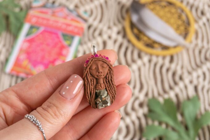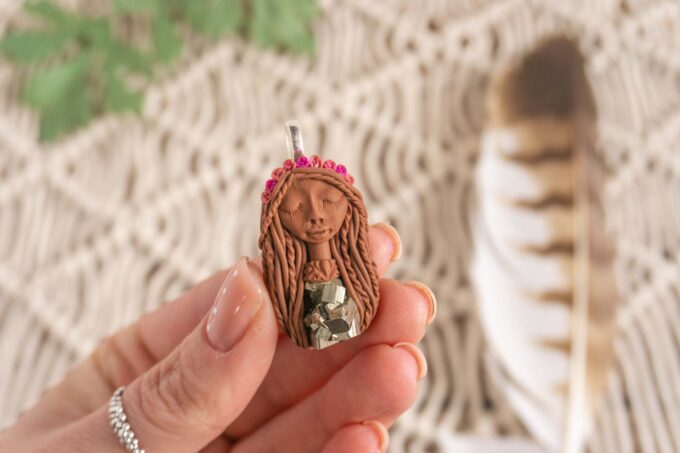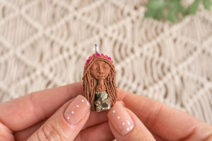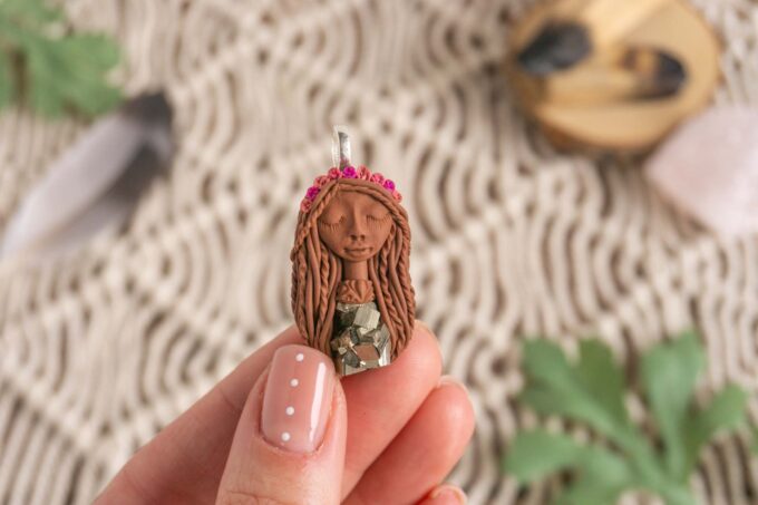 Čarobnica je izdelana iz polimerne gline. Vsak kos je unikaten in na voljo samo en kos. Izdelek lahko minimalno odstopa v barvnih niansah in detajlih, vendar se trudim, da bo vaš izdelek v naravi identičen opisu in fotografiji.