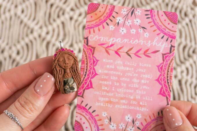 Vsaka Čarobnica je poimenovana po boginjah iz različnih obdobij, kultur in tradicij z vseh koncev sveta. Med izdelavo za vsako Čarobnico posebej povlečem orakelsko karto, ki nosi posebno sporočilo. Z vsako Čarobnico dobite torej še sporočilo, ki ga odkrijete šele, ko odprete paketek.