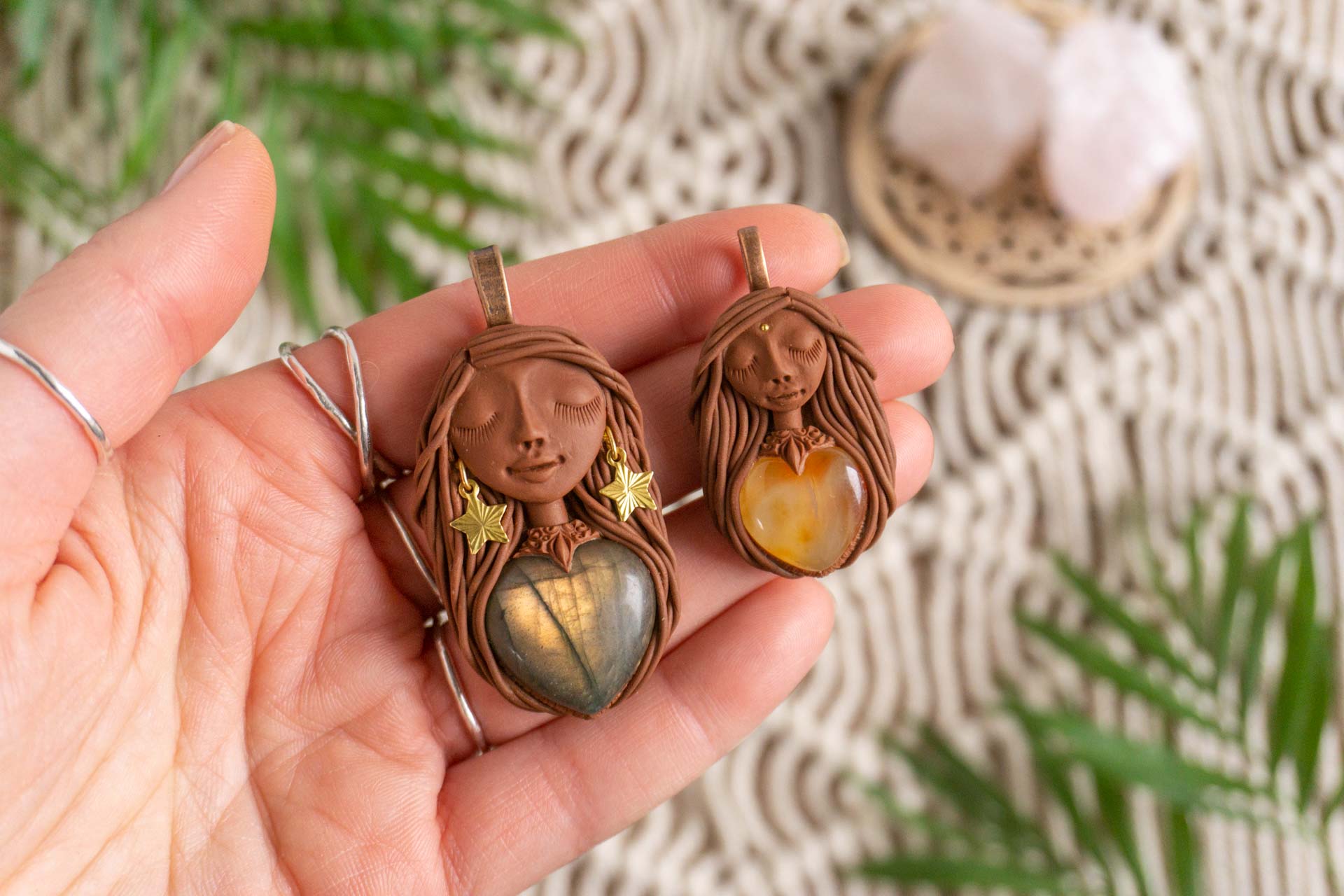 Vsaka Čarobnica je poimenovana po boginjah iz različnih obdobij, kultur in tradicij z vseh koncev sveta. Med izdelavo za vsako Čarobnico posebej povlečem orakelsko karto, ki nosi posebno sporočilo. Z vsako Čarobnico dobite torej še sporočilo, ki ga odkrijete šele, ko odprete paketek.