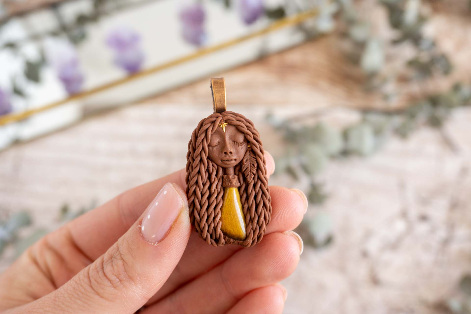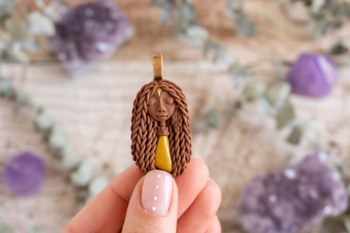 Čarobnica je izdelana iz polimerne gline. Vsak kos je unikaten in na voljo samo en kos. Izdelek lahko minimalno odstopa v barvnih niansah in detajlih, vendar se trudim, da bo vaš izdelek v naravi identičen opisu in fotografiji.
