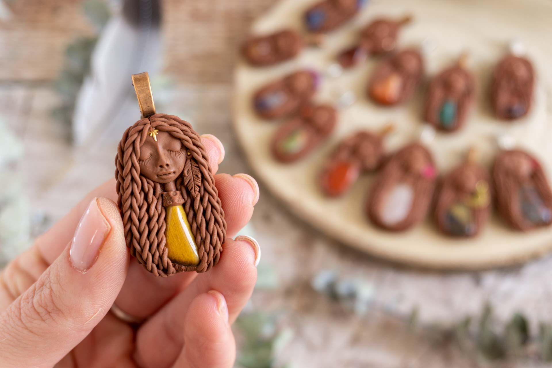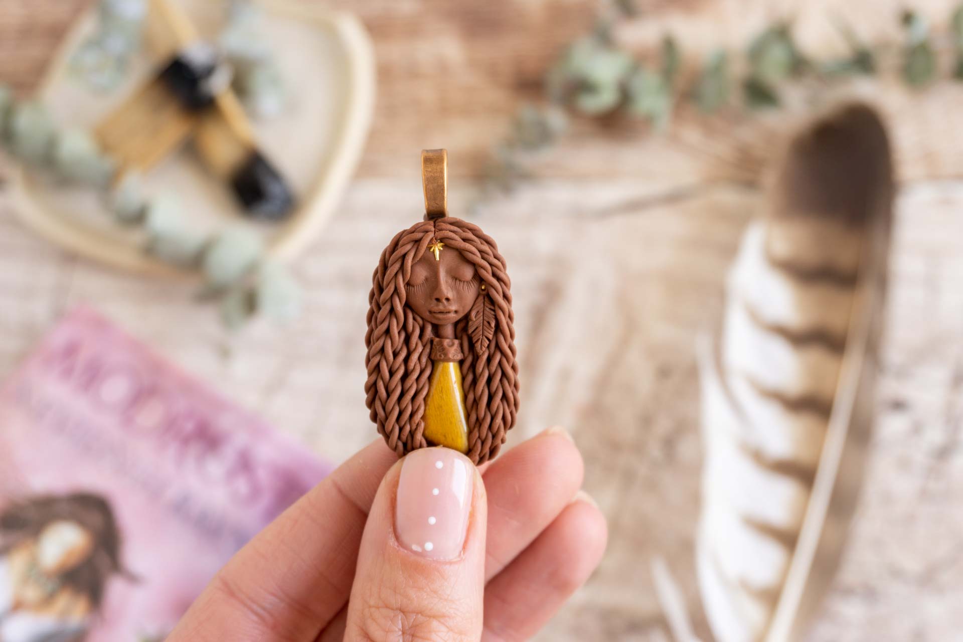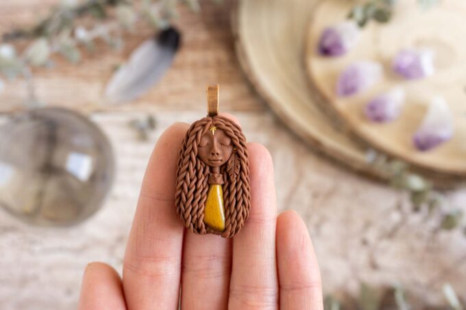 Vsaka Čarobnica je poimenovana po boginjah iz različnih obdobij, kultur in tradicij z vseh koncev sveta. Med izdelavo za vsako Čarobnico posebej povlečem orakelsko karto, ki nosi posebno sporočilo. Z vsako Čarobnico dobite torej še sporočilo, ki ga odkrijete šele, ko odprete paketek.