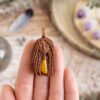 Čarobnico dobite povoščeni rjavi vrvici dolžine 42 cm (s cca 4cm podaljšano ketnico). V paketu pa dobite tudi ketnico dolžine 65 cm, tako da lahko nošenje izdelka prilagodite.