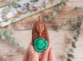 Vsaka Čarobnica je poimenovana po boginjah iz različnih obdobij, kultur in tradicij z vseh koncev sveta. Med izdelavo za vsako Čarobnico posebej povlečem orakelsko karto, ki nosi posebno sporočilo. Z vsako Čarobnico dobite torej še sporočilo, ki ga odkrijete šele, ko odprete paketek.