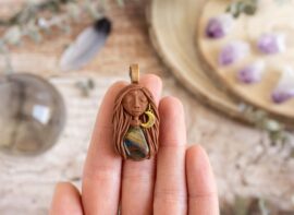 Vsaka Čarobnica je poimenovana po boginjah iz različnih obdobij, kultur in tradicij z vseh koncev sveta. Med izdelavo za vsako Čarobnico posebej povlečem orakelsko karto, ki nosi posebno sporočilo. Z vsako Čarobnico dobite torej še sporočilo, ki ga odkrijete šele, ko odprete paketek.