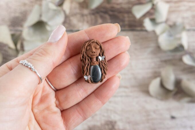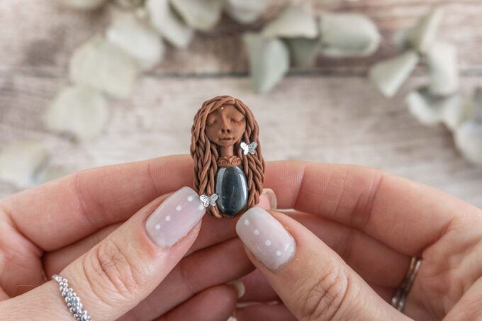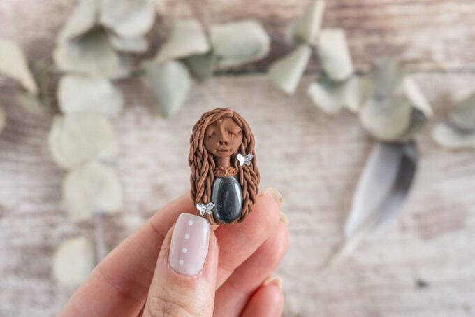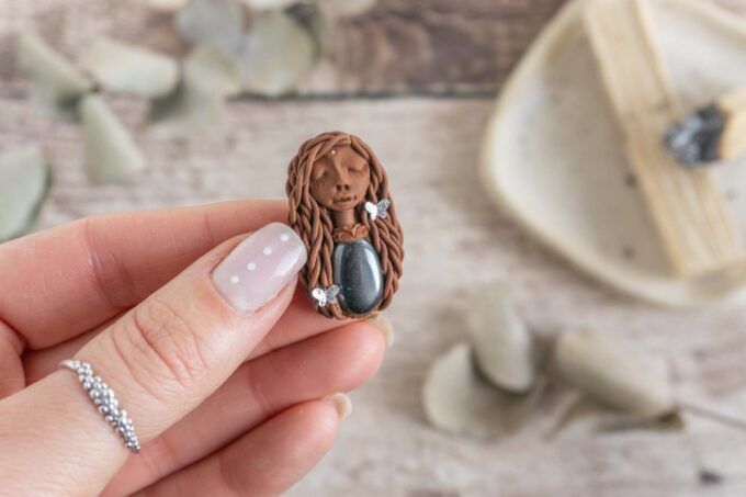 Čarobnica je izdelana iz polimerne gline. Vsak kos je unikaten in na voljo samo en kos. Izdelek lahko minimalno odstopa v barvnih niansah in detajlih, vendar se trudim, da bo vaš izdelek v naravi identičen opisu in fotografiji.