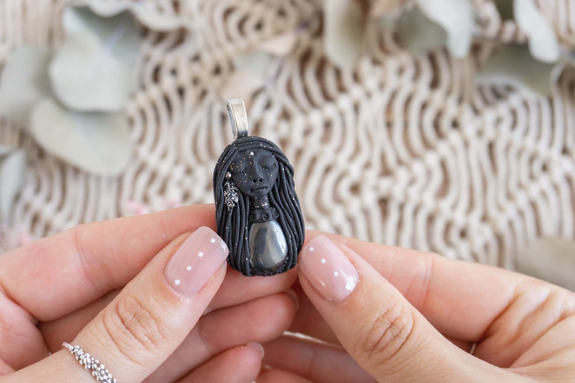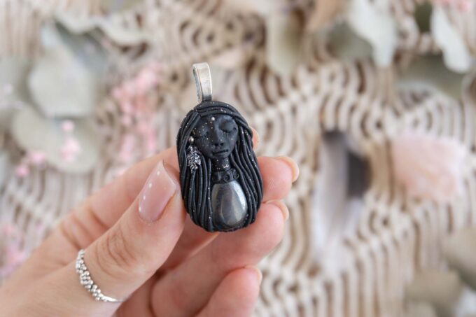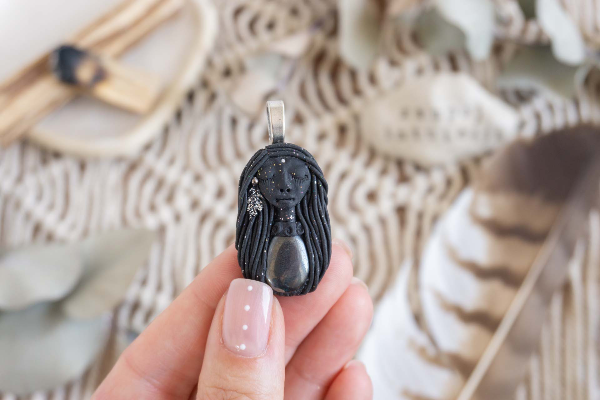 Čarobnica je izdelana iz polimerne gline. Vsak kos je unikaten in na voljo samo en kos. Izdelek lahko minimalno odstopa v barvnih niansah in detajlih, vendar se trudim, da bo vaš izdelek v naravi identičen opisu in fotografiji.