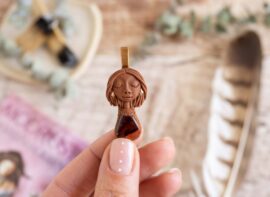 Vsaka Čarobnica je poimenovana po boginjah iz različnih obdobij, kultur in tradicij z vseh koncev sveta. Med izdelavo za vsako Čarobnico posebej povlečem orakelsko karto, ki nosi posebno sporočilo. Z vsako Čarobnico dobite torej še sporočilo, ki ga odkrijete šele, ko odprete paketek.