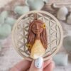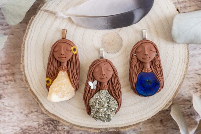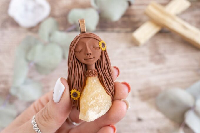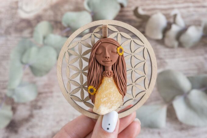 Vsaka Čarobnica je poimenovana po boginjah iz različnih obdobij, kultur in tradicij z vseh koncev sveta. Med izdelavo za vsako Čarobnico posebej povlečem orakelsko karto, ki nosi posebno sporočilo. Z vsako Čarobnico dobite torej še sporočilo, ki ga odkrijete šele, ko odprete paketek.