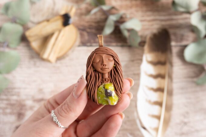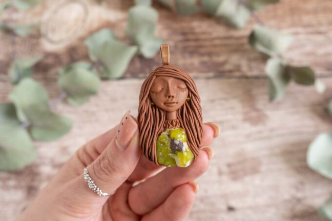 Čarobnica je izdelana iz polimerne gline. Vsak kos je unikaten in na voljo samo en kos. Izdelek lahko minimalno odstopa v barvnih niansah in detajlih, vendar se trudim, da bo vaš izdelek v naravi identičen opisu in fotografiji.