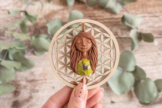 Vsaka Čarobnica je poimenovana po boginjah iz različnih obdobij, kultur in tradicij z vseh koncev sveta. Med izdelavo za vsako Čarobnico posebej povlečem orakelsko karto, ki nosi posebno sporočilo. Z vsako Čarobnico dobite torej še sporočilo, ki ga odkrijete šele, ko odprete paketek.