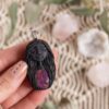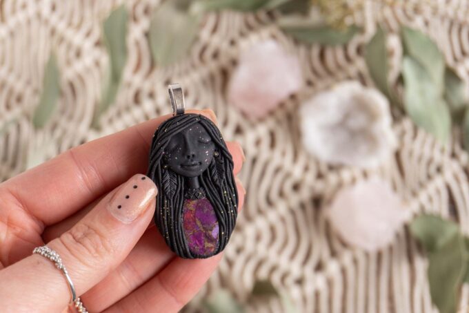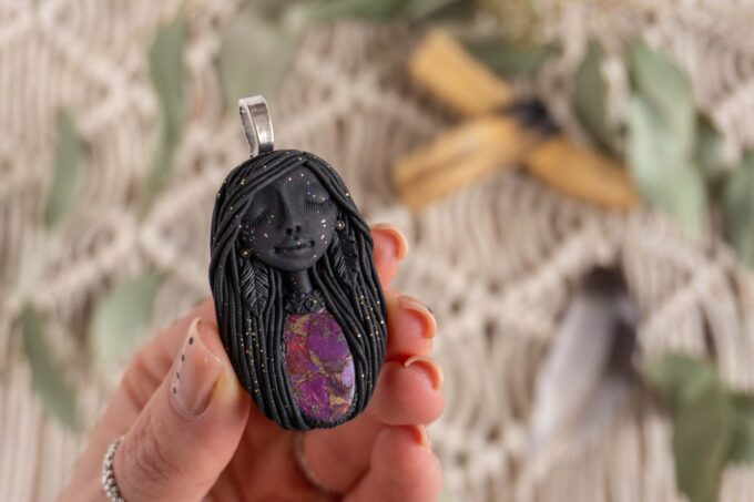 Vsaka Čarobnica je poimenovana po boginjah iz različnih obdobij, kultur in tradicij z vseh koncev sveta. Med izdelavo za vsako Čarobnico posebej povlečem orakelsko karto, ki nosi posebno sporočilo. Z vsako Čarobnico dobite torej še sporočilo, ki ga odkrijete