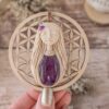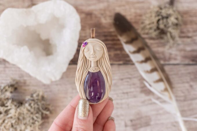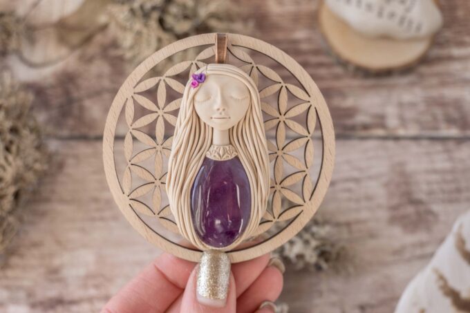 Vsaka Čarobnica je poimenovana po boginjah iz različnih obdobij, kultur in tradicij z vseh koncev sveta. Med izdelavo za vsako Čarobnico posebej povlečem orakelsko karto, ki nosi posebno sporočilo. Z vsako Čarobnico dobite torej še sporočilo, ki ga odkrijete šele, ko odprete paketek.
