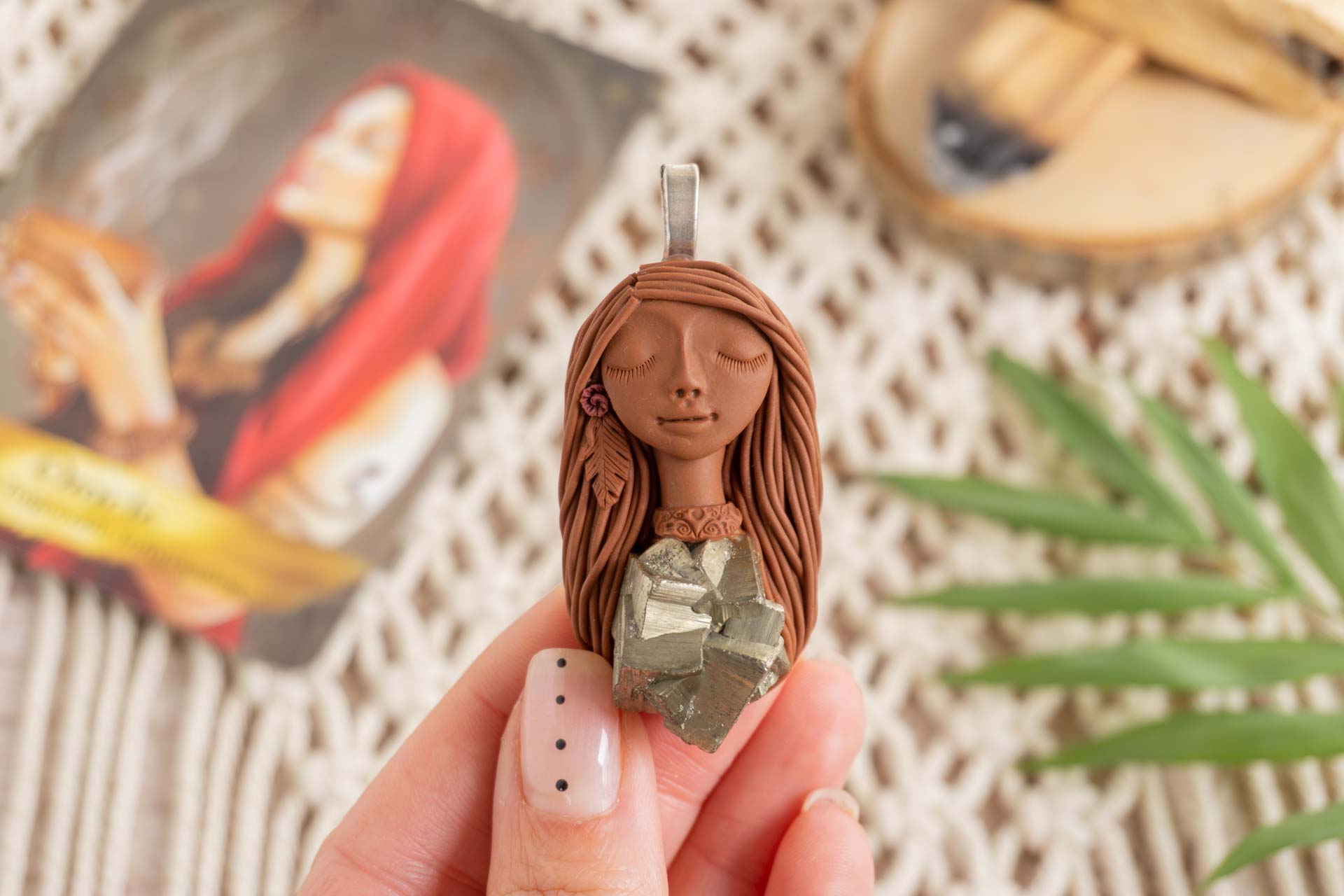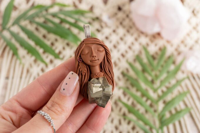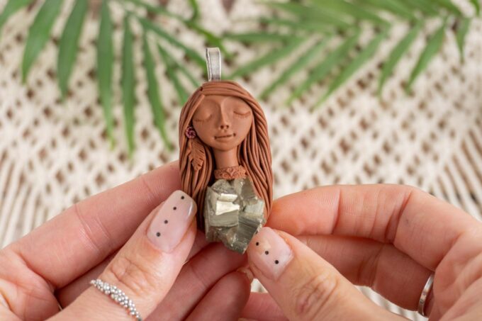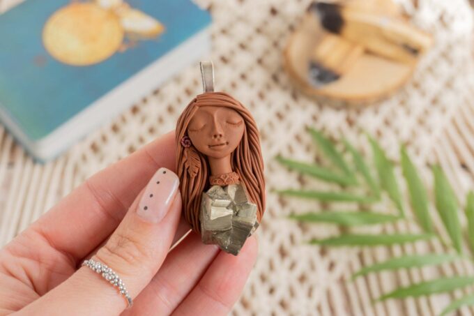 Čarobnica je izdelana iz polimerne gline. Vsak kos je unikaten in na voljo samo en kos. Izdelek lahko minimalno odstopa v barvnih niansah in detajlih, vendar se trudim, da bo vaš izdelek v naravi identičen opisu in fotografiji.