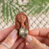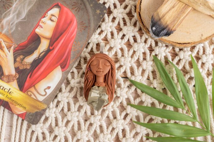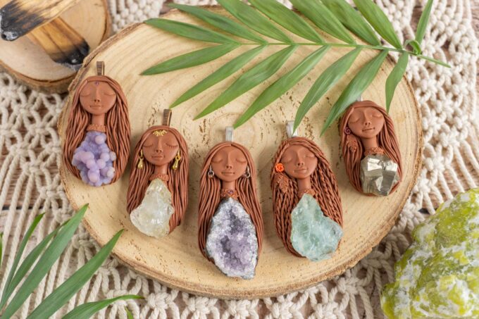 Vsaka Čarobnica je poimenovana po boginjah iz različnih obdobij, kultur in tradicij z vseh koncev sveta. Med izdelavo za vsako Čarobnico posebej povlečem orakelsko karto, ki nosi posebno sporočilo. Z vsako Čarobnico dobite torej še sporočilo, ki ga odkrijete šele, ko odprete paketek.