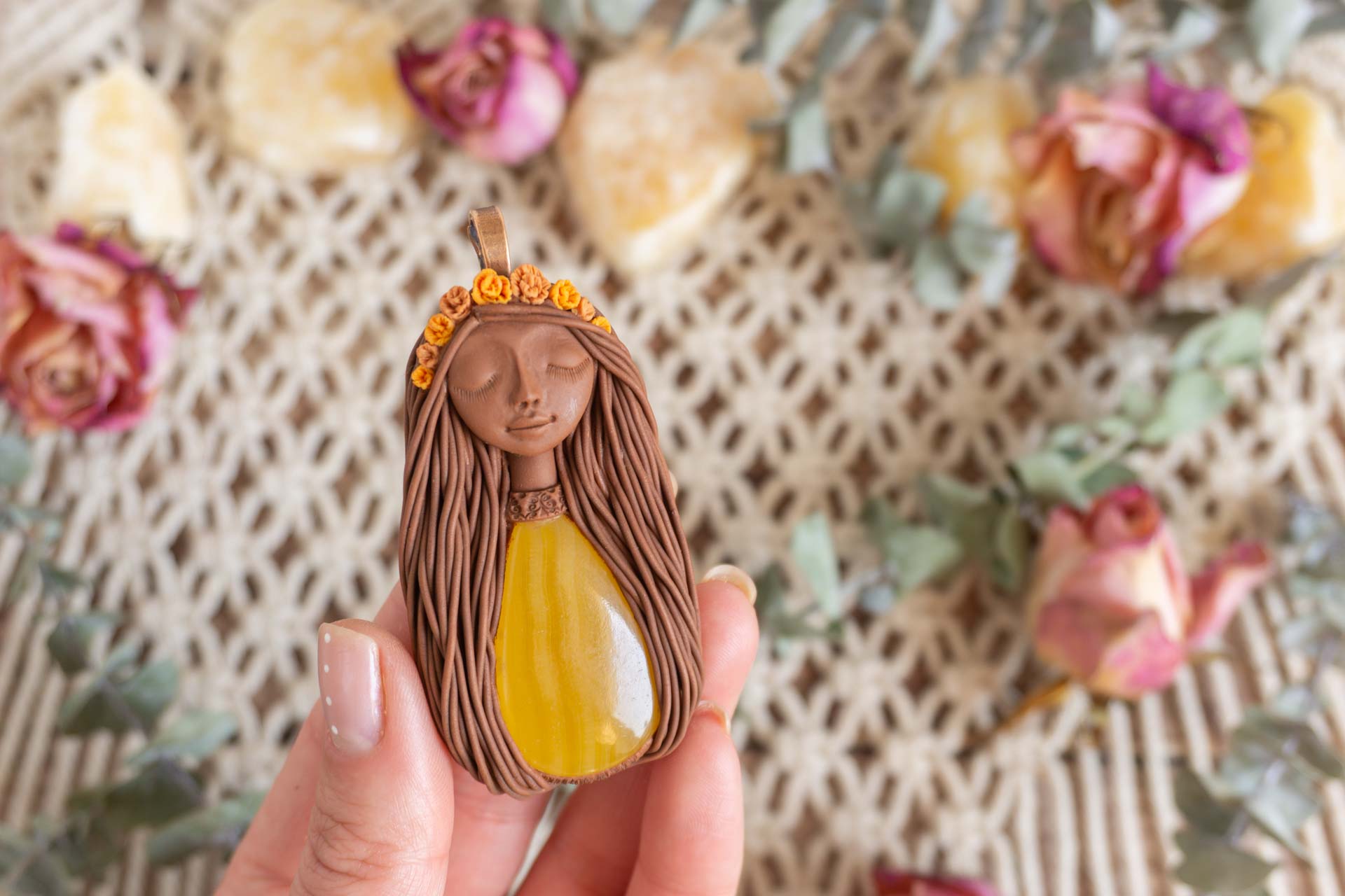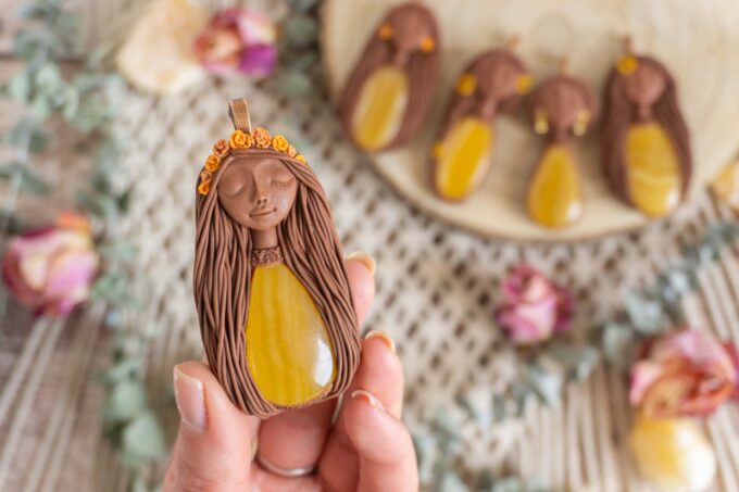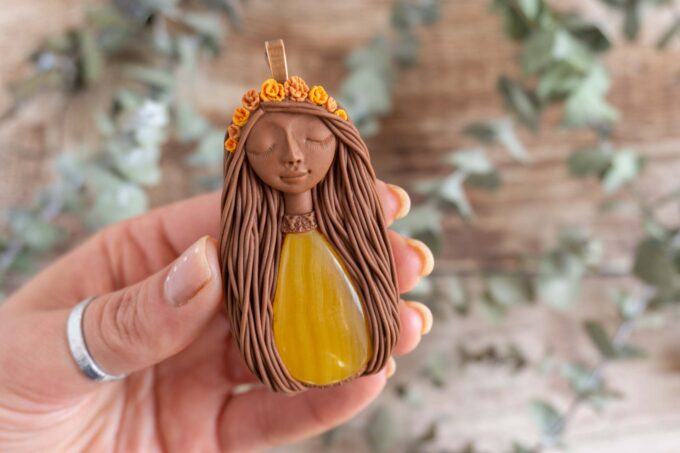 Čarobnica je izdelana iz polimerne gline. Vsak kos je unikaten in na voljo samo en kos. Izdelek lahko minimalno odstopa v barvnih niansah in detajlih, vendar se trudim, da bo vaš izdelek v naravi identičen opisu in fotografiji.