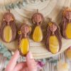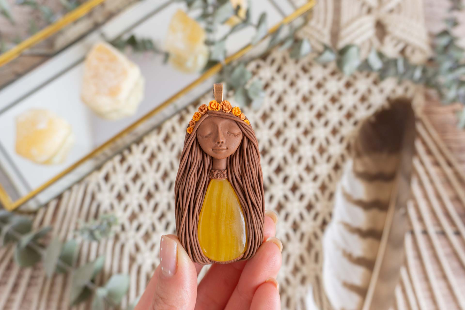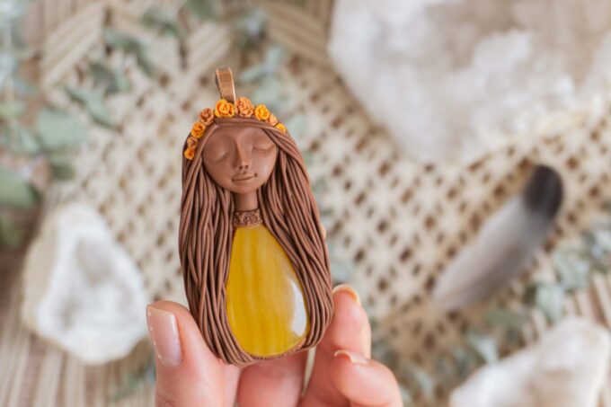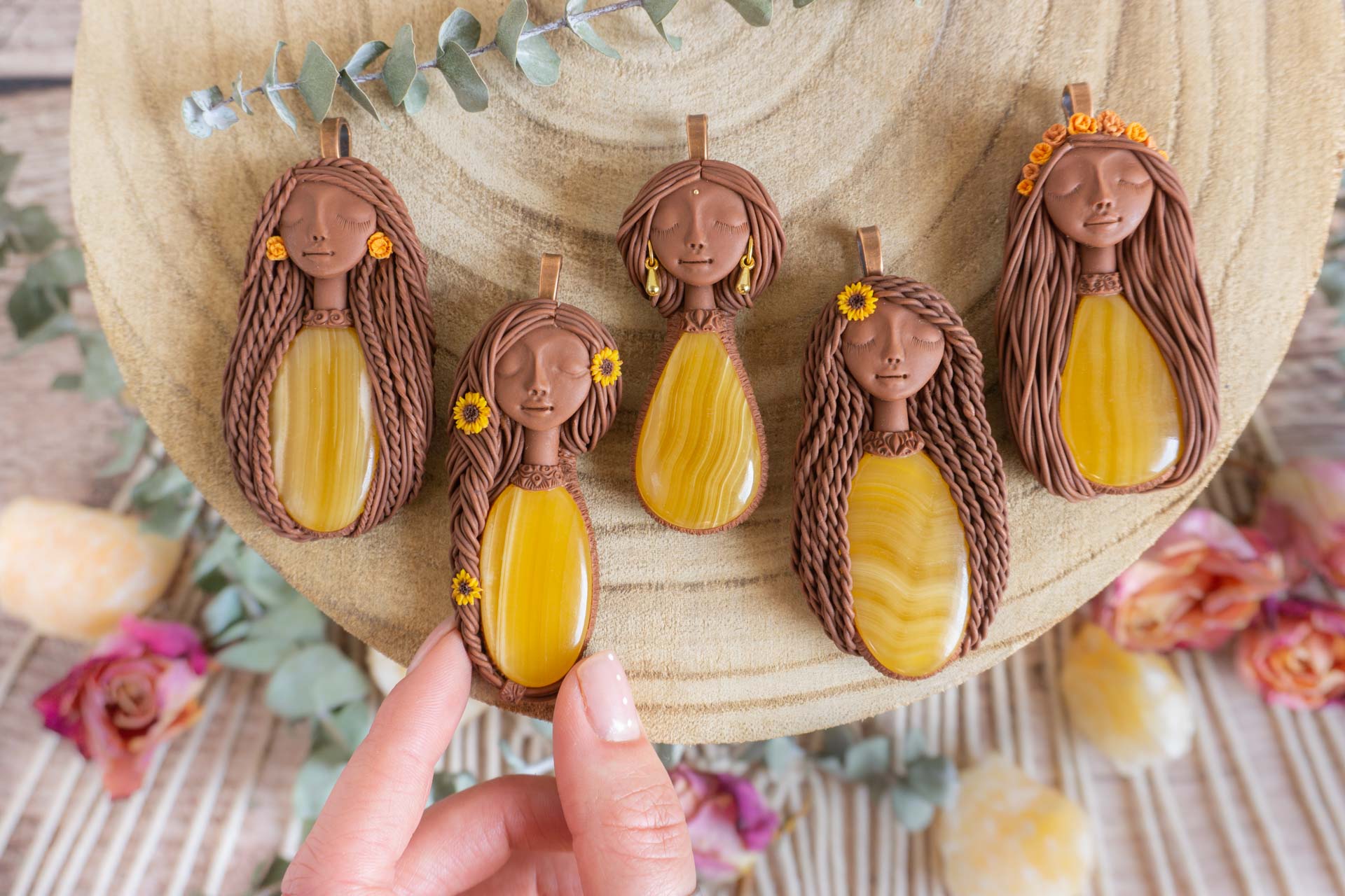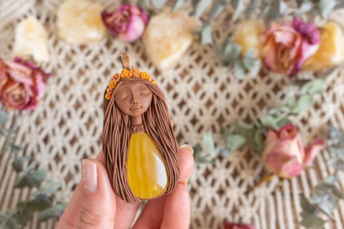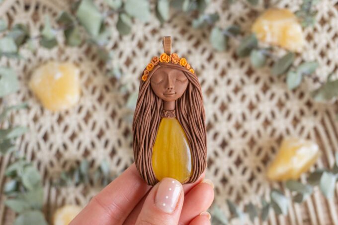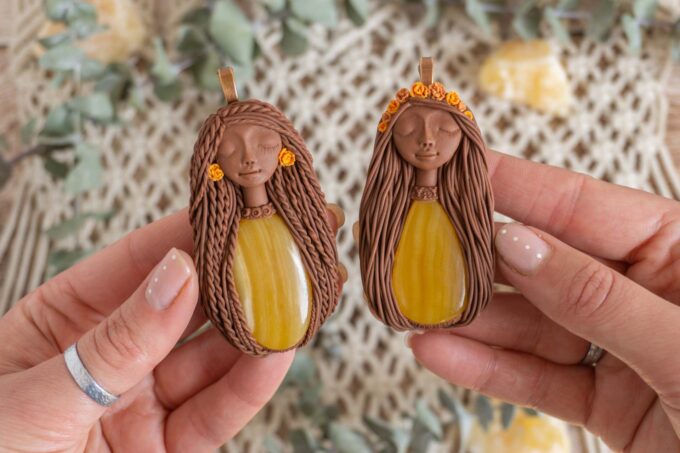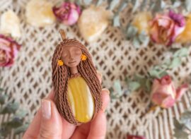 Vsaka Čarobnica je poimenovana po boginjah iz različnih obdobij, kultur in tradicij z vseh koncev sveta. Med izdelavo za vsako Čarobnico posebej povlečem orakelsko karto, ki nosi posebno sporočilo. Z vsako Čarobnico dobite torej še sporočilo, ki ga odkrijete šele, ko odprete paketek.