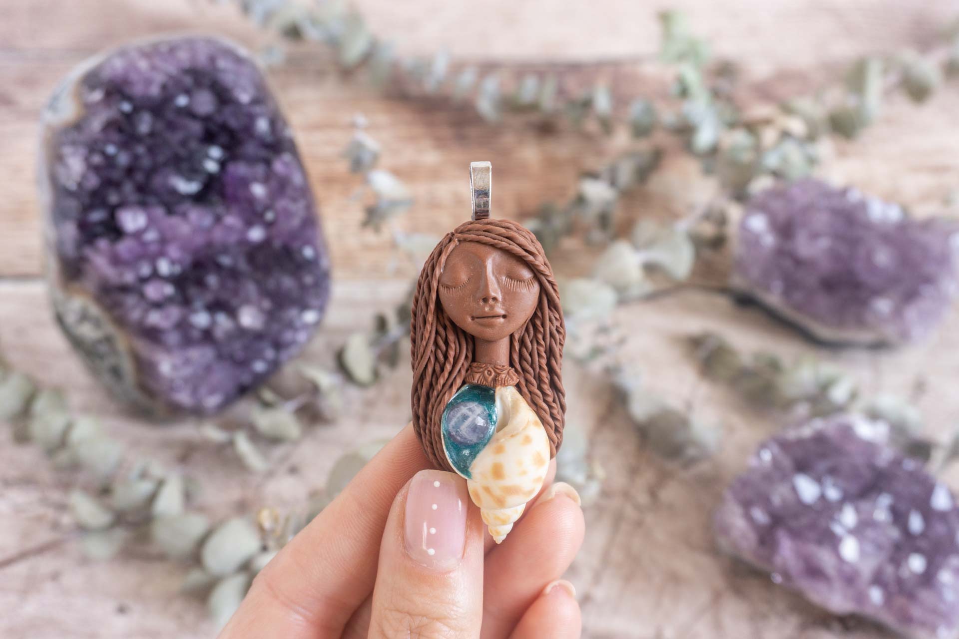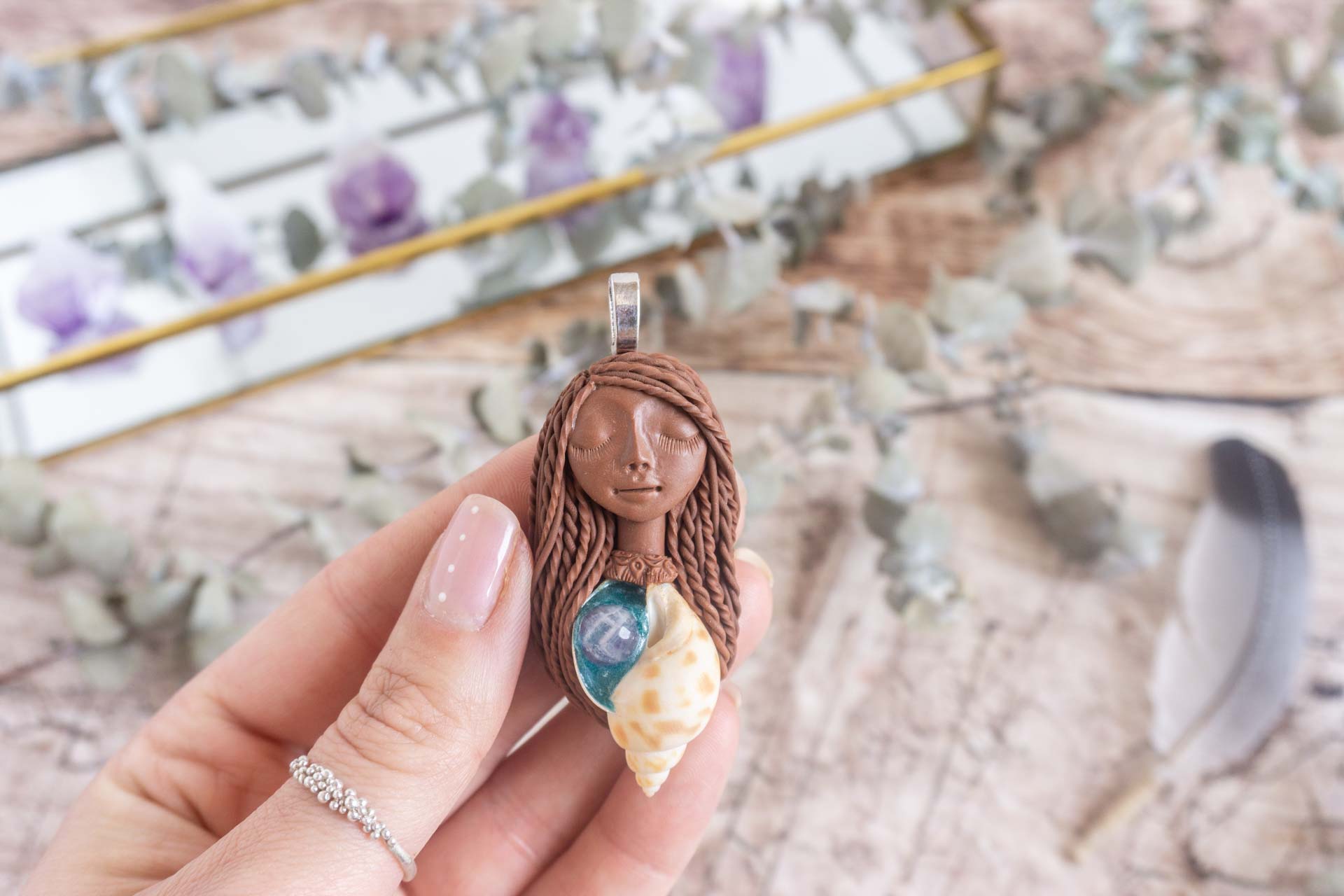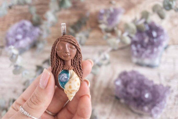 Čarobnica je izdelana iz polimerne gline. Vsak kos je unikaten in na voljo samo en kos. Izdelek lahko minimalno odstopa v barvnih niansah in detajlih, vendar se trudim, da bo vaš izdelek v naravi identičen opisu in fotografiji.