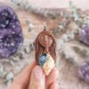 Vsaka Čarobnica je poimenovana po boginjah iz različnih obdobij, kultur in tradicij z vseh koncev sveta. Med izdelavo za vsako Čarobnico posebej povlečem orakelsko karto, ki nosi posebno sporočilo. Z vsako Čarobnico dobite torej še sporočilo, ki ga odkrijete šele, ko odprete paketek.