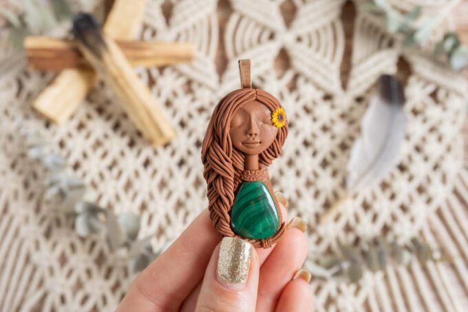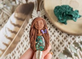 Vsaka Čarobnica je poimenovana po boginjah iz različnih obdobij, kultur in tradicij z vseh koncev sveta. Med izdelavo za vsako Čarobnico posebej povlečem orakelsko karto, ki nosi posebno sporočilo. Z vsako Čarobnico dobite torej še sporočilo, ki ga odkrijete šele, ko odprete paketek.
