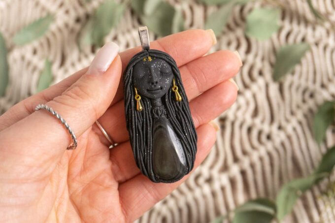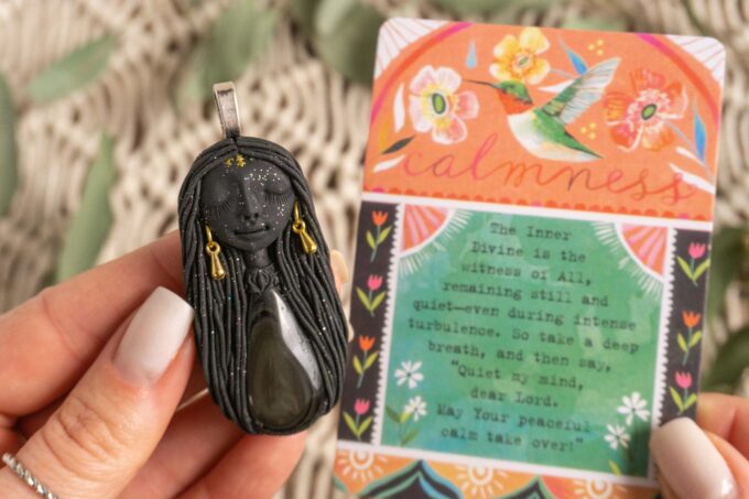 Vsaka Čarobnica je poimenovana po boginjah iz različnih obdobij, kultur in tradicij z vseh koncev sveta. Med izdelavo za vsako Čarobnico posebej povlečem orakelsko karto, ki nosi posebno sporočilo. Z vsako Čarobnico dobite torej še sporočilo, ki ga odkrijete šele, ko odprete paketek.
