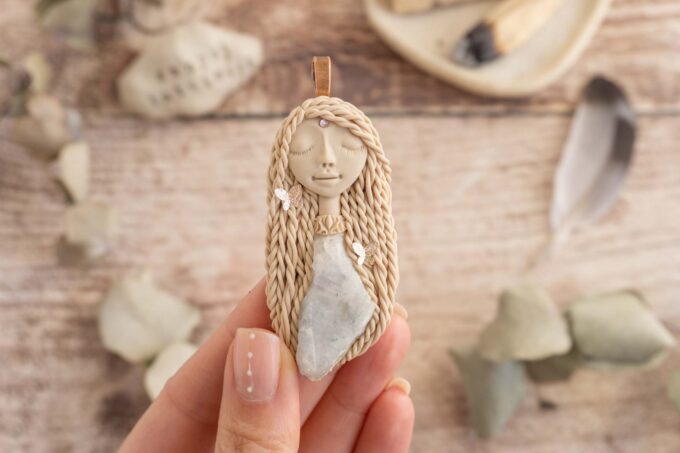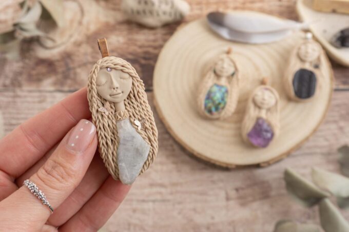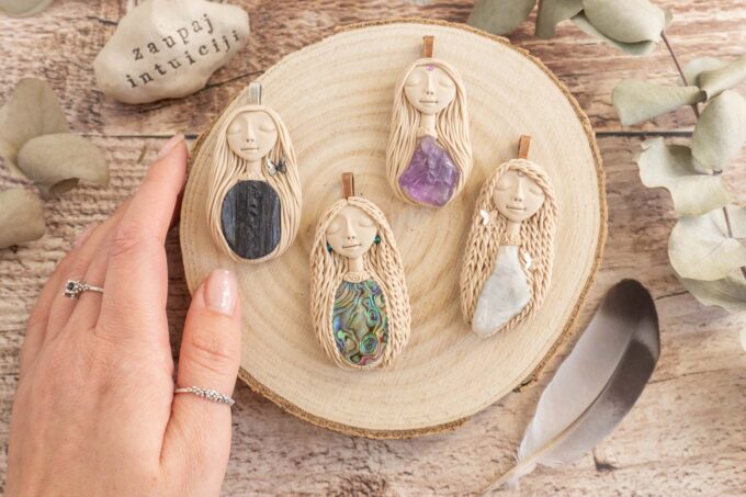Vsaka Čarobnica je poimenovana po boginjah iz različnih obdobij, kultur in tradicij z vseh koncev sveta. Med izdelavo za vsako Čarobnico posebej povlečem orakelsko karto, ki nosi posebno sporočilo. Z vsako Čarobnico dobite torej še sporočilo, ki ga odkrijete šele, ko odprete paketek.