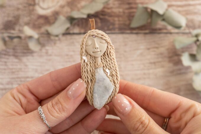 Čarobnica je izdelana iz polimerne gline. Vsak kos je unikaten in na voljo samo en kos. Izdelek lahko minimalno odstopa v barvnih niansah in detajlih, vendar se trudim, da bo vaš izdelek v naravi identičen opisu in fotografiji.