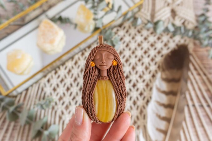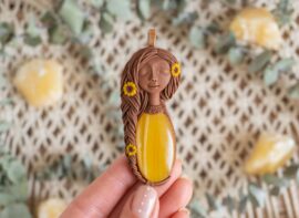 Vsaka Čarobnica je poimenovana po boginjah iz različnih obdobij, kultur in tradicij z vseh koncev sveta. Med izdelavo za vsako Čarobnico posebej povlečem orakelsko karto, ki nosi posebno sporočilo. Z vsako Čarobnico dobite torej še sporočilo, ki ga odkrijete šele, ko odprete paketek.