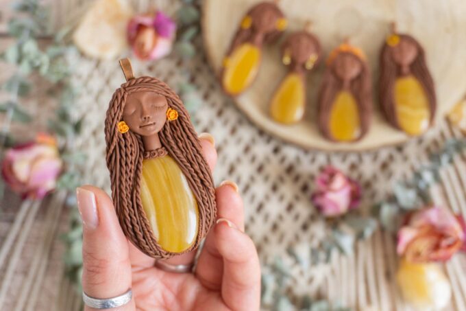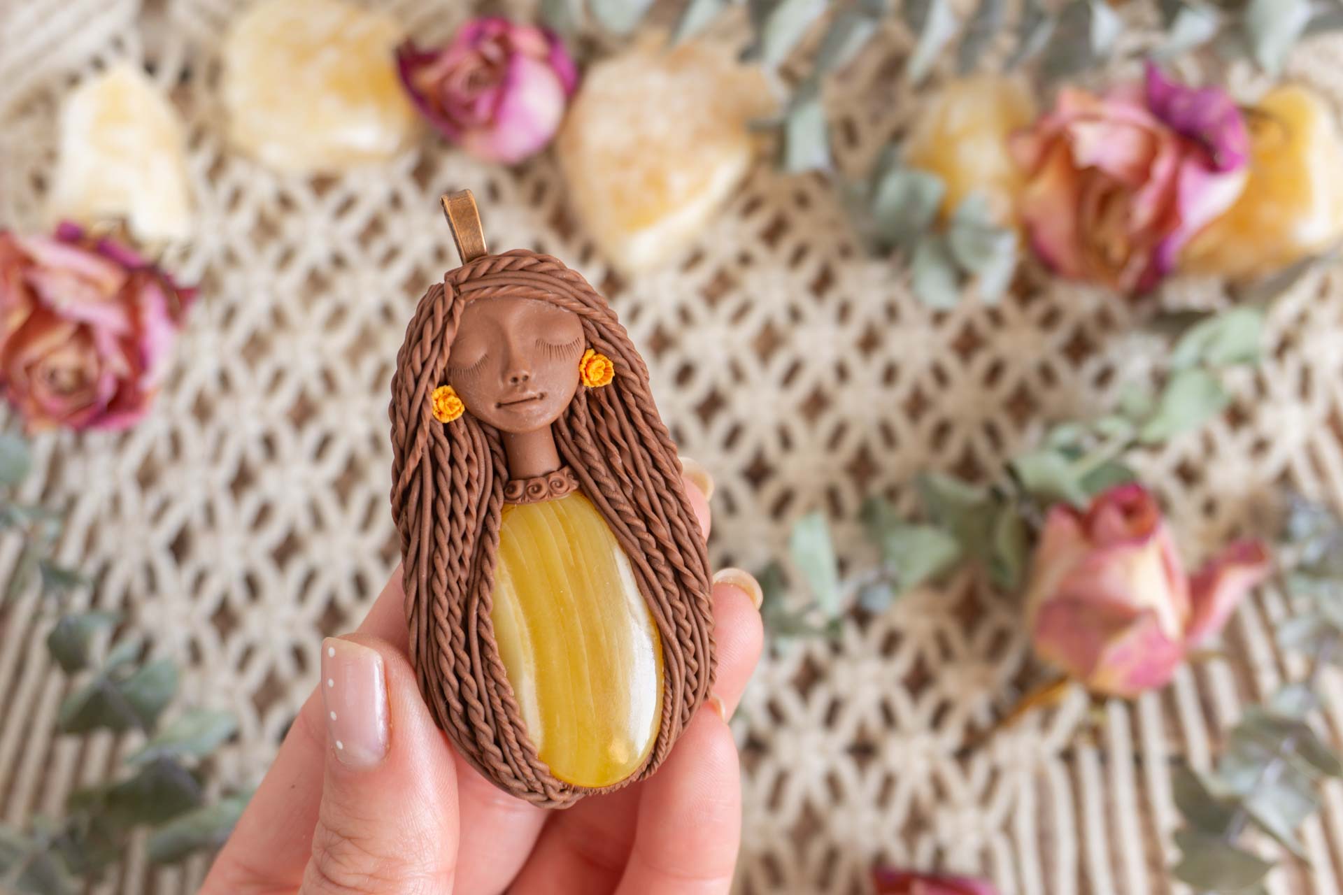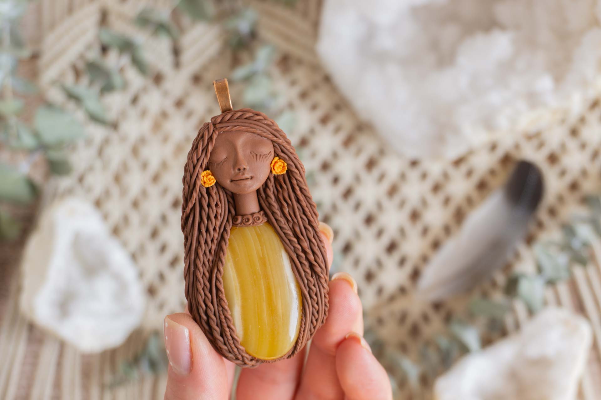 Čarobnica je izdelana iz polimerne gline. Vsak kos je unikaten in na voljo samo en kos. Izdelek lahko minimalno odstopa v barvnih niansah in detajlih, vendar se trudim, da bo vaš izdelek v naravi identičen opisu in fotografiji.