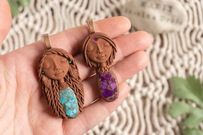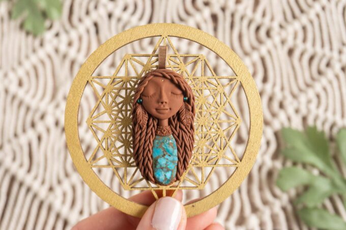 Vsaka Čarobnica je poimenovana po boginjah iz različnih obdobij, kultur in tradicij z vseh koncev sveta. Med izdelavo za vsako Čarobnico posebej povlečem orakelsko karto, ki nosi posebno sporočilo. Z vsako Čarobnico dobite torej še sporočilo, ki ga odkrijete