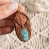 Kristal je narejen iz lomljencev turkiza povezanega z bakrom.