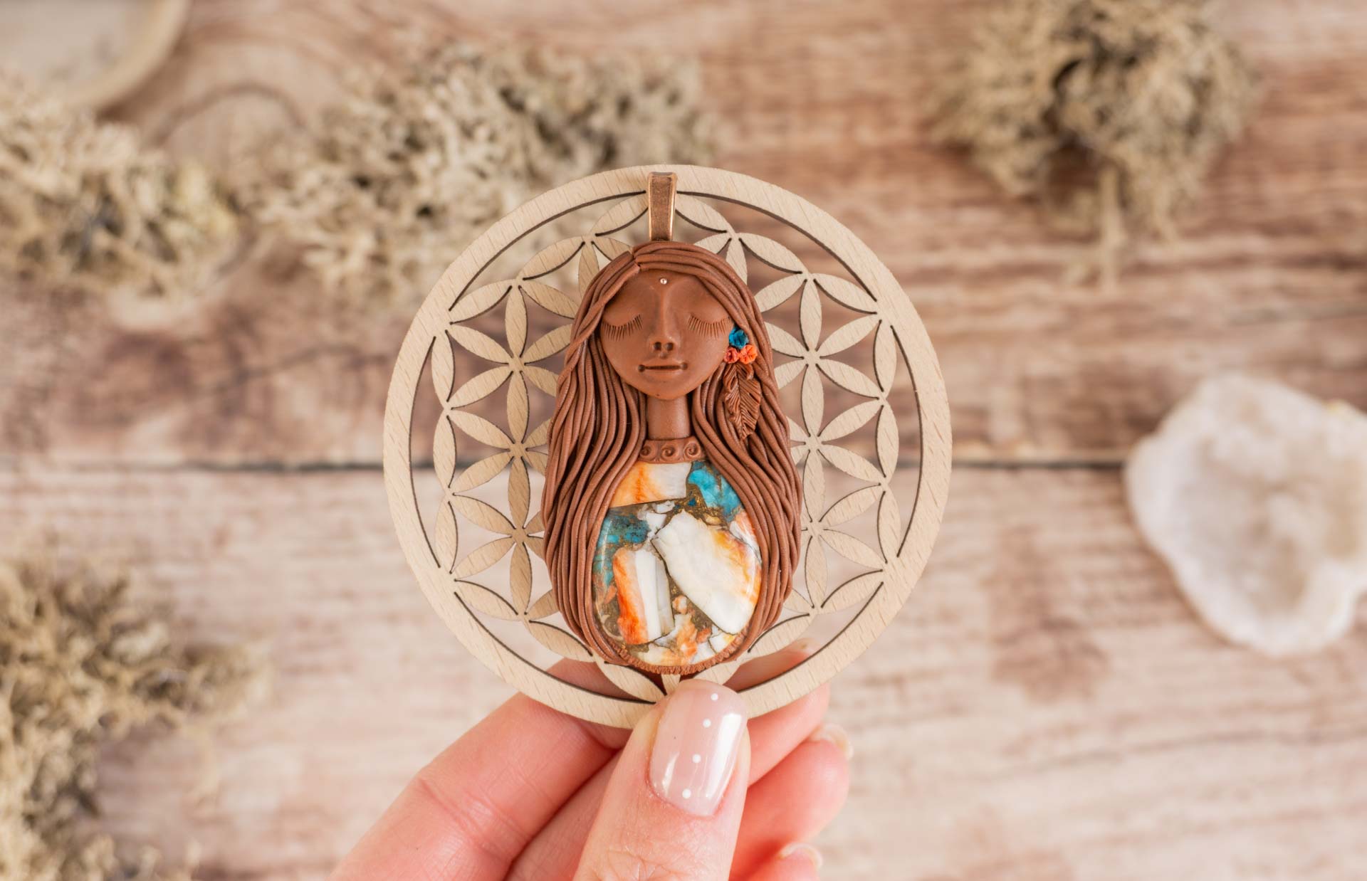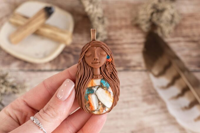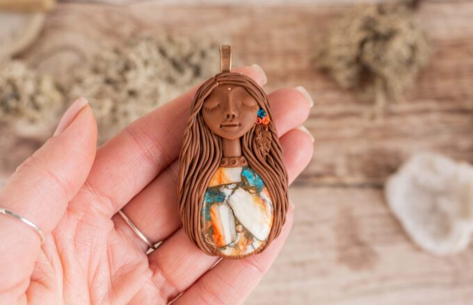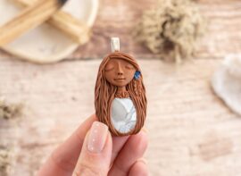 Čarobnica je izdelana iz polimerne gline. Vsak kos je unikaten in na voljo samo en kos. Izdelek lahko minimalno odstopa v barvnih niansah in detajlih, vendar se trudim, da bo vaš izdelek v naravi identičen opisu in fotografiji.