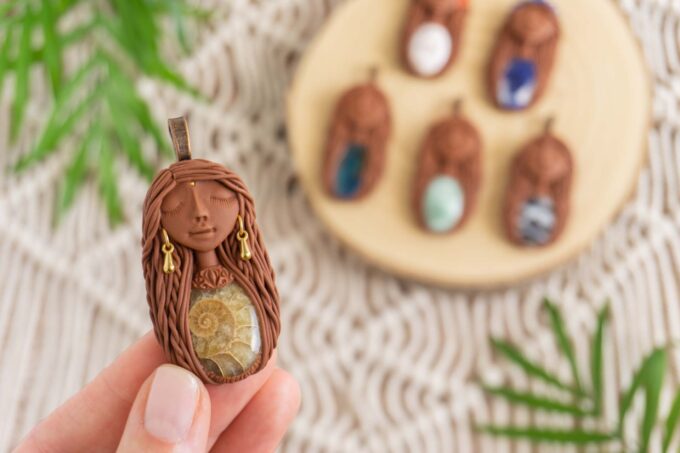 Vsaka Čarobnica je poimenovana po boginjah iz različnih obdobij, kultur in tradicij z vseh koncev sveta. Med izdelavo za vsako Čarobnico posebej povlečem orakelsko karto, ki nosi posebno sporočilo. Z vsako Čarobnico dobite torej še sporočilo, ki ga odkrijete šele, ko odprete paketek.