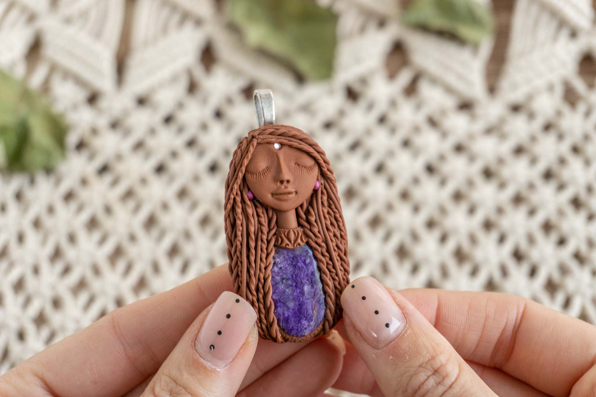 Čarobnica je izdelana iz polimerne gline. Vsak kos je unikaten in na voljo samo en kos. Izdelek lahko minimalno odstopa v barvnih niansah in detajlih, vendar se trudim, da bo vaš izdelek v naravi identičen opisu in fotografiji.