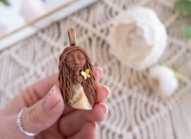 Čarobnica je izdelana iz polimerne gline. Vsak kos je unikaten in na voljo samo en kos. Izdelek lahko minimalno odstopa v barvnih niansah in detajlih, vendar se trudim, da bo vaš izdelek v naravi identičen opisu in fotografiji.