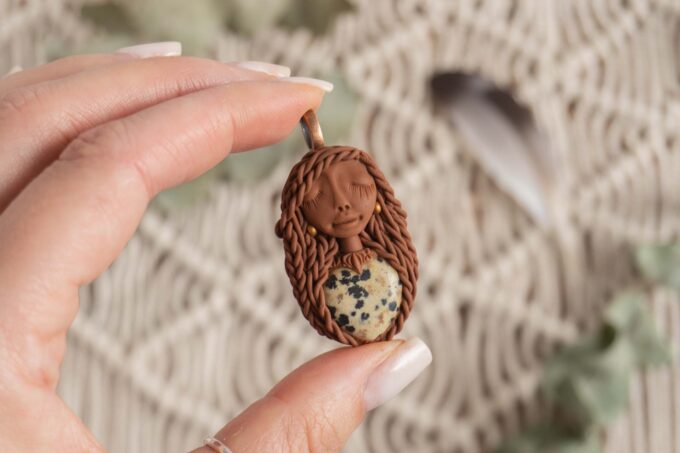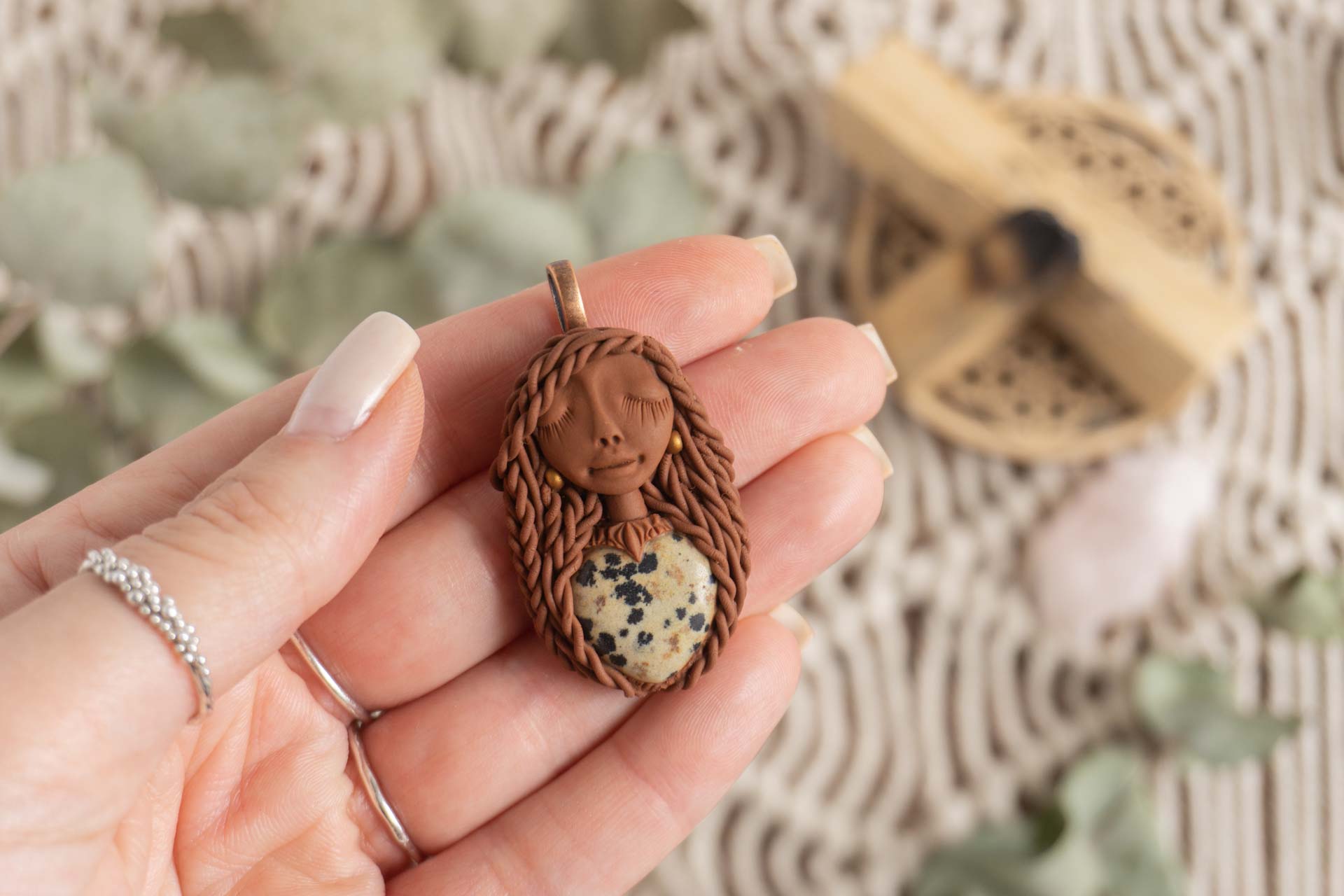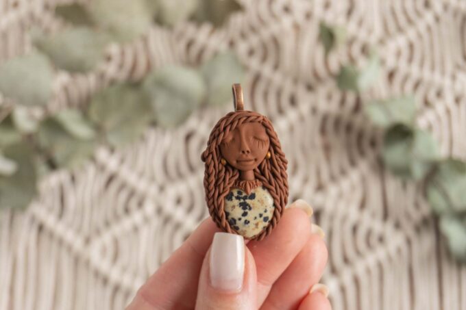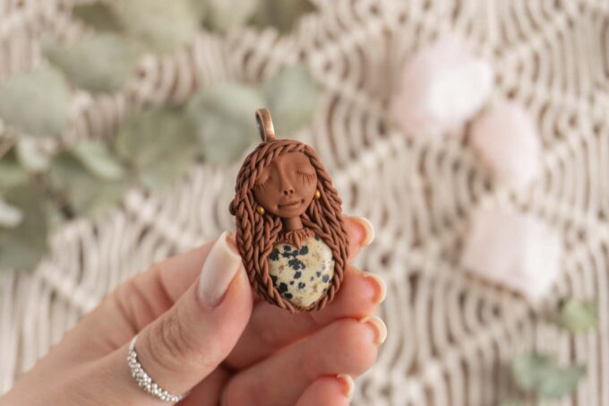 Čarobnica je izdelana iz polimerne gline. Vsak kos je unikaten in na voljo samo en kos. Izdelek lahko minimalno odstopa v barvnih niansah in detajlih, vendar se trudim, da bo vaš izdelek v naravi identičen opisu in fotografiji.