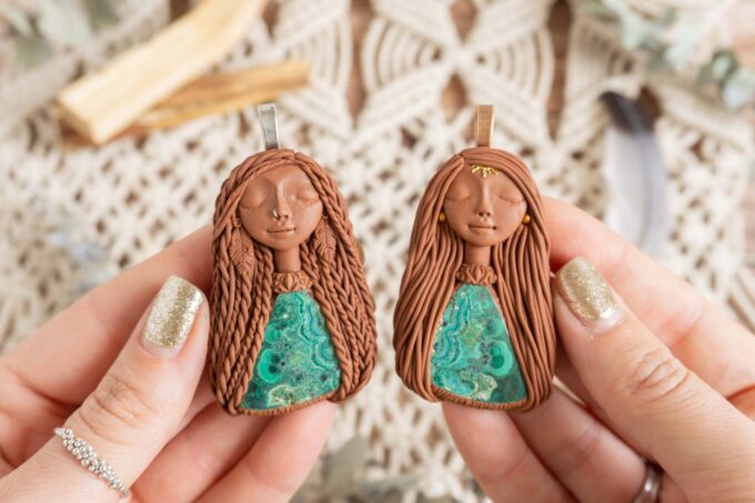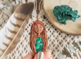 Vsaka Čarobnica je poimenovana po boginjah iz različnih obdobij, kultur in tradicij z vseh koncev sveta. Med izdelavo za vsako Čarobnico posebej povlečem orakelsko karto, ki nosi posebno sporočilo. Z vsako Čarobnico dobite torej še sporočilo, ki ga odkrijete šele, ko odprete paketek.