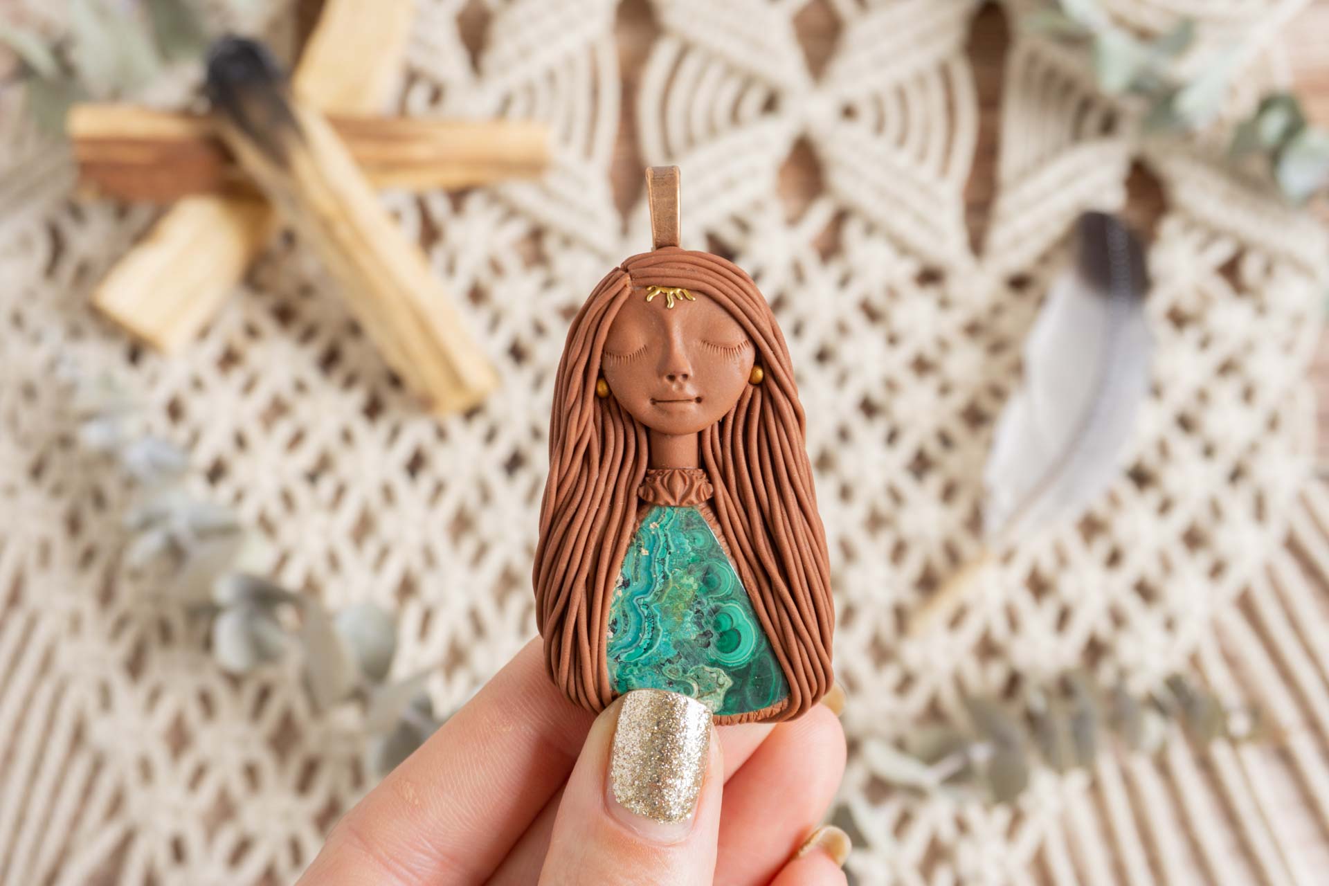 Čarobnica je izdelana iz polimerne gline. Vsak kos je unikaten in na voljo samo en kos. Izdelek lahko minimalno odstopa v barvnih niansah in detajlih, vendar se trudim, da bo vaš izdelek v naravi identičen opisu in fotografiji.