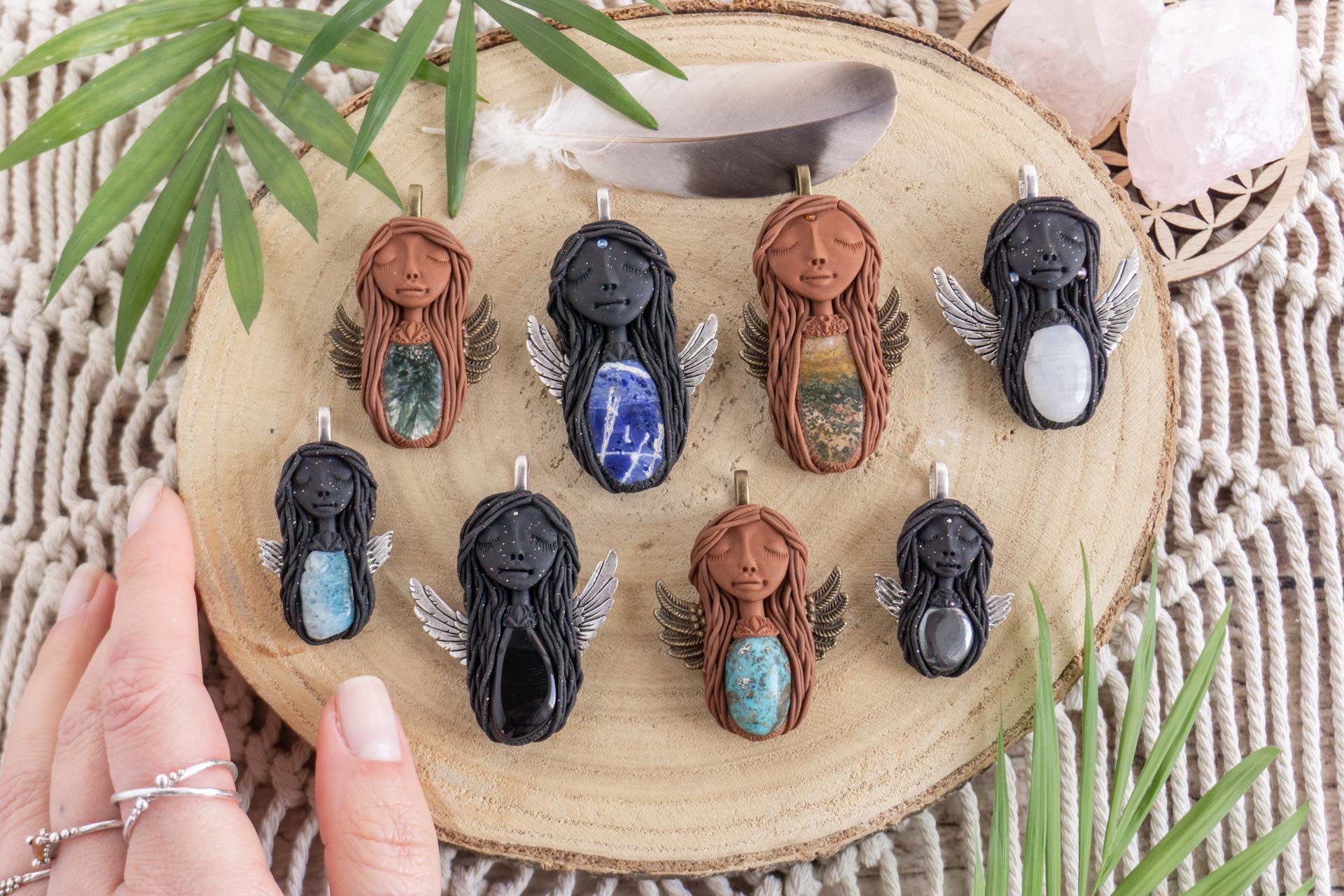 Čarobnice vsebujejo kristale in poldrage kamne. Vsak izdelek je unikaten in ima posebno zgodbo. Tako kot nas določeni kamni pritegnejo in se povežejo z našo energijo, tako tudi Čarobnice iščejo svoje lastnike. Čarobnico si izberete intuitivno ali pa na podlagi kamna, ki ga vsebuje.