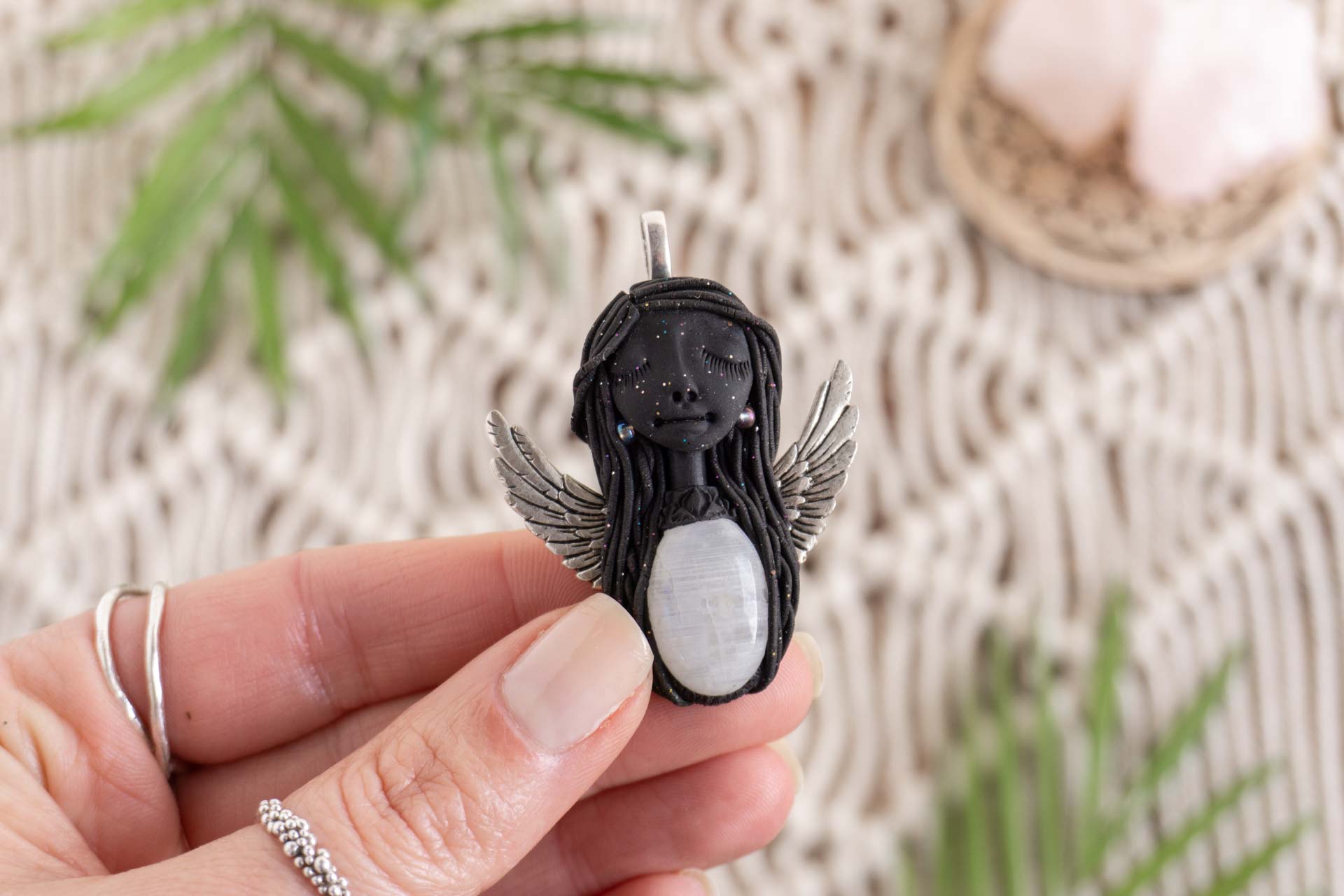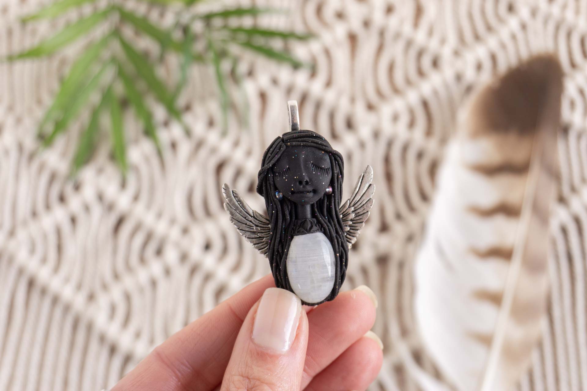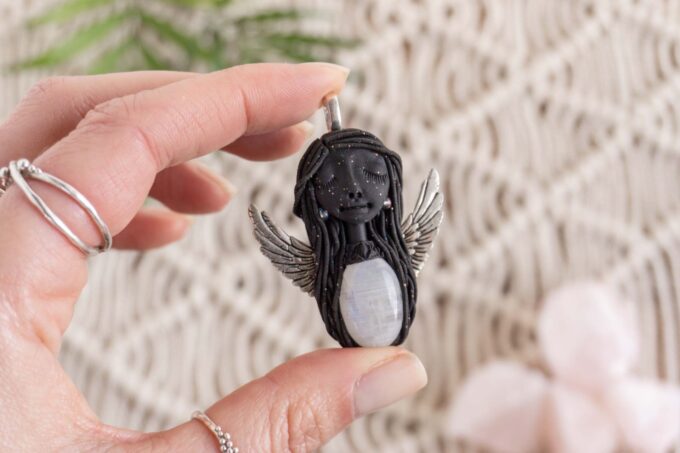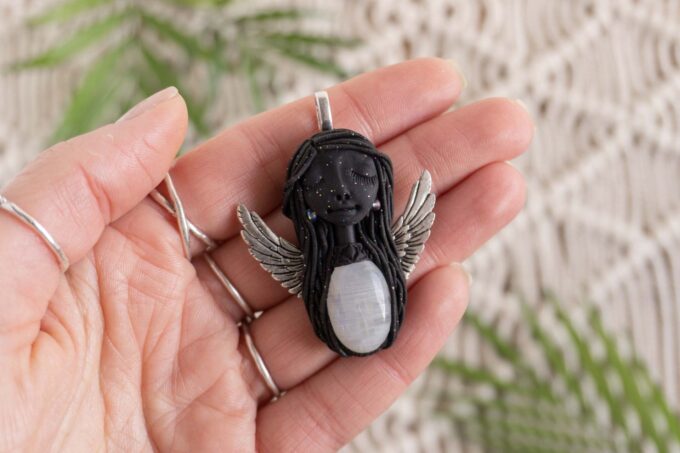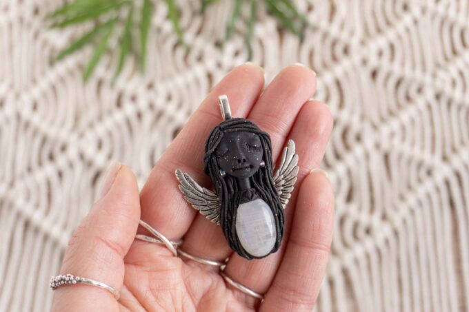 Čarobnica je izdelana iz polimerne gline. Vsak kos je unikaten in na voljo samo en kos. Izdelek lahko minimalno odstopa v barvnih niansah in detajlih, vendar se trudim, da bo vaš izdelek v naravi identičen opisu in fotografiji.