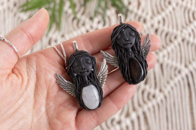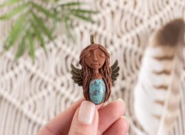 Vsaka Čarobnica je poimenovana po boginjah iz različnih obdobij, kultur in tradicij z vseh koncev sveta. Med izdelavo za vsako Čarobnico posebej povlečem orakelsko karto, ki nosi posebno sporočilo. Z vsako Čarobnico dobite torej še sporočilo, ki ga odkrijete šele, ko odprete paketek.