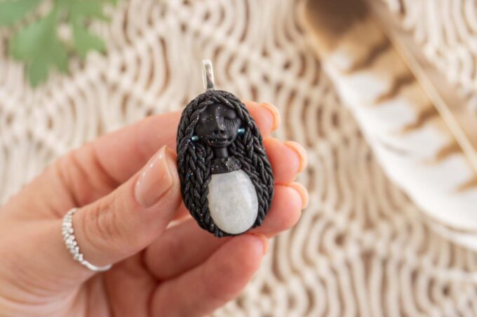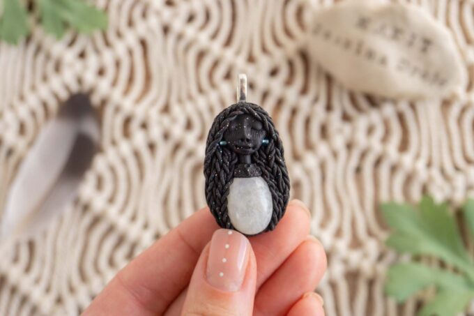 Čarobnica je izdelana iz polimerne gline. Vsak kos je unikaten in na voljo samo en kos. Izdelek lahko minimalno odstopa v barvnih niansah in detajlih, vendar se trudim, da bo vaš izdelek v naravi identičen opisu in fotografiji.