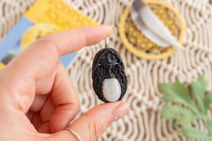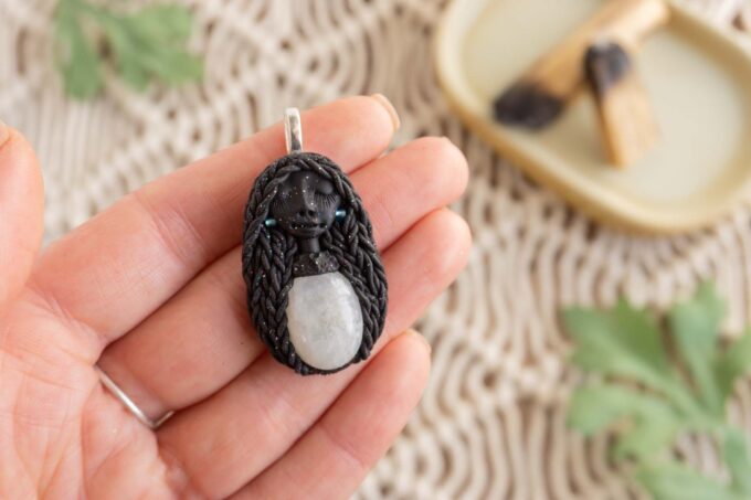 Vsaka Čarobnica je poimenovana po boginjah iz različnih obdobij, kultur in tradicij z vseh koncev sveta. Med izdelavo za vsako Čarobnico posebej povlečem orakelsko karto, ki nosi posebno sporočilo. Z vsako Čarobnico dobite torej še sporočilo, ki ga odkrijete šele, ko odprete paketek.