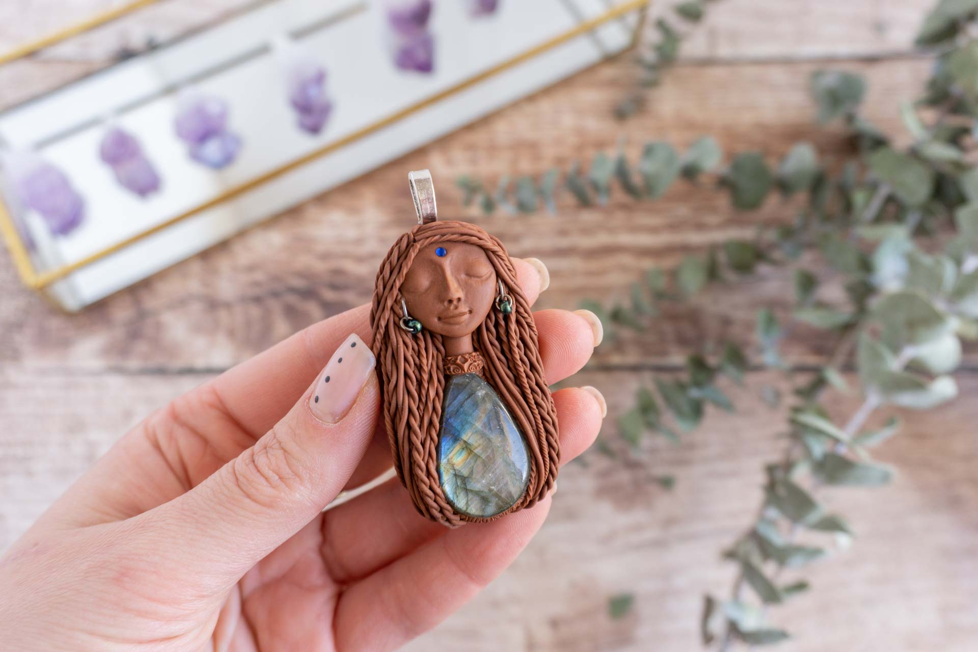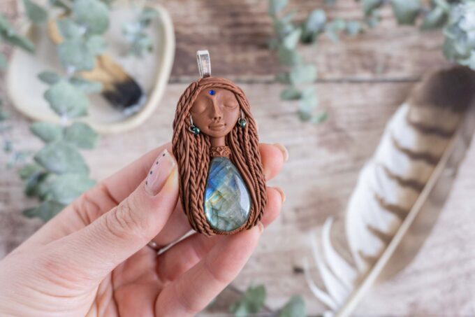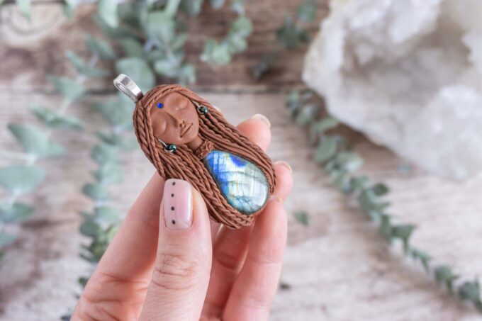 Čarobnica je izdelana iz polimerne gline. Vsak kos je unikaten in na voljo samo en kos. Izdelek lahko minimalno odstopa v barvnih niansah in detajlih, vendar se trudim, da bo vaš izdelek v naravi identičen opisu in fotografiji.