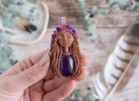 Vsaka Čarobnica je poimenovana po boginjah iz različnih obdobij, kultur in tradicij z vseh koncev sveta. Med izdelavo za vsako Čarobnico posebej povlečem orakelsko karto, ki nosi posebno sporočilo. Z vsako Čarobnico dobite torej še sporočilo, ki ga odkrijete šele, ko odprete paketek.