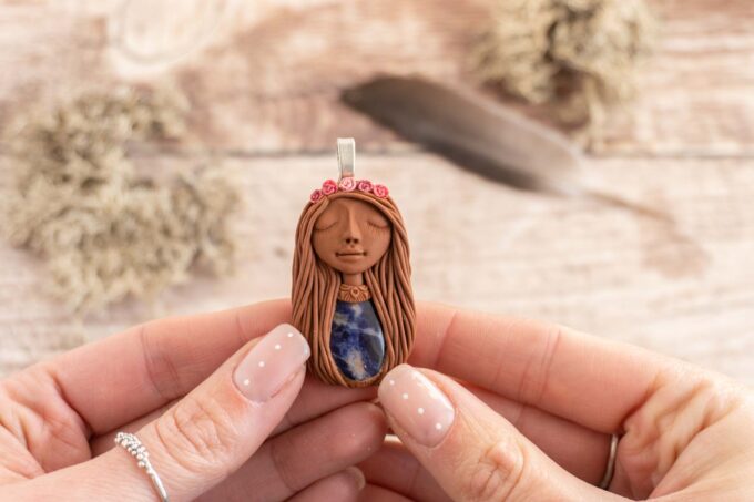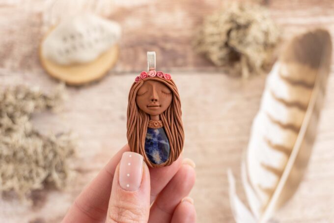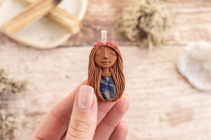 Čarobnica je izdelana iz polimerne gline. Vsak kos je unikaten in na voljo samo en kos. Izdelek lahko minimalno odstopa v barvnih niansah in detajlih, vendar se trudim, da bo vaš izdelek v naravi identičen opisu in fotografiji.