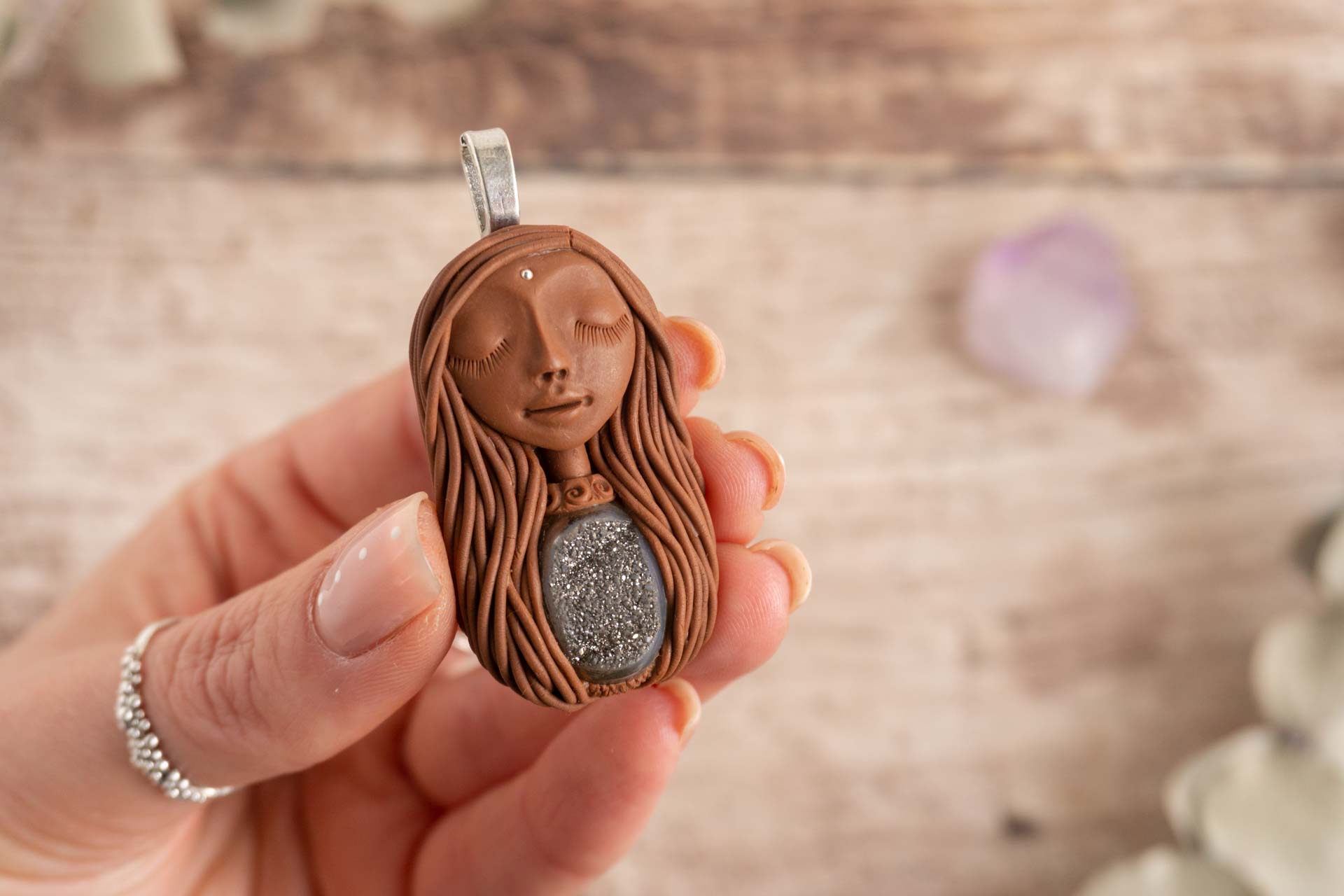 Čarobnica je izdelana iz polimerne gline. Vsak kos je unikaten in na voljo samo en kos. Izdelek lahko minimalno odstopa v barvnih niansah in detajlih, vendar se trudim, da bo vaš izdelek v naravi identičen opisu in fotografiji.